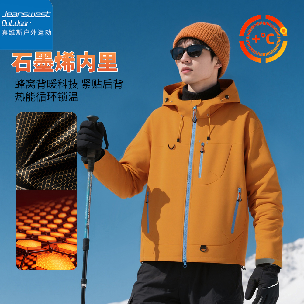石墨烯内里,蜂窝背暖科技,紧贴后背,热能循环锁温!3D立体裁剪,防风防水,锁温防寒!可当情侣装,颜色任选!【赠运费险】
