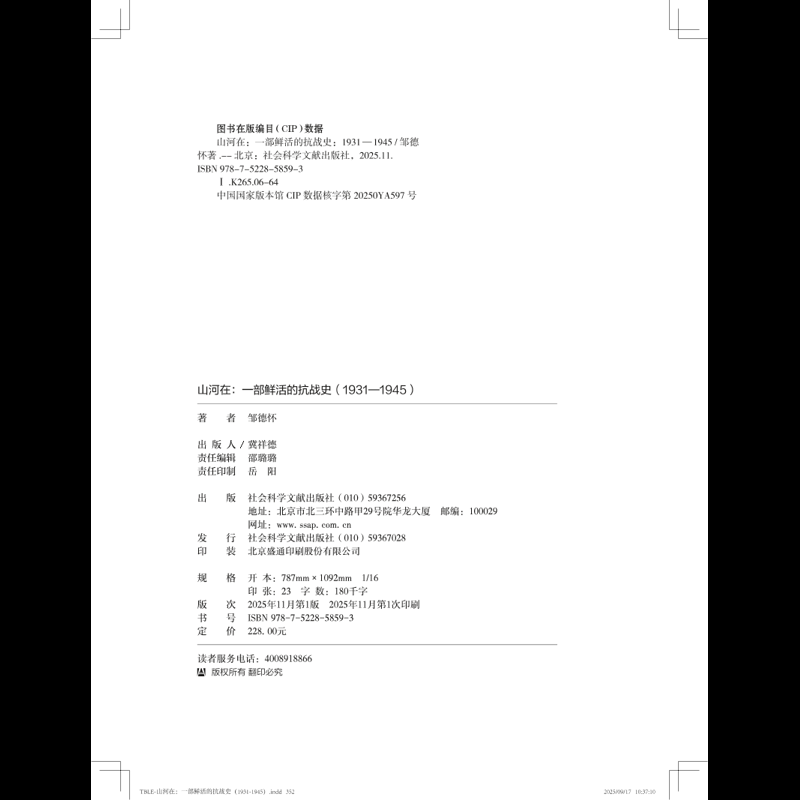 推荐理由:山河在:一部鲜活的抗战史(1931—1945)邹德怀 近现代史(1840-1919) 社会科学文献出版社 书籍正版 凤凰新华书店旗舰店