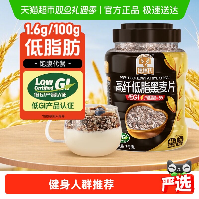 穗格氏高纤黑麦片罐装营养早餐低GI认证【下拉淘金币抵扣更多】