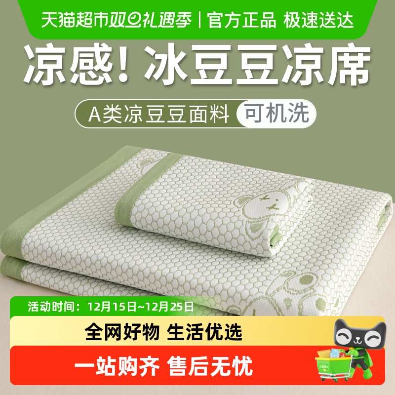 A类母婴级冰豆豆夏季凉感丝席凉席夏天2025新款空调软席子三件套