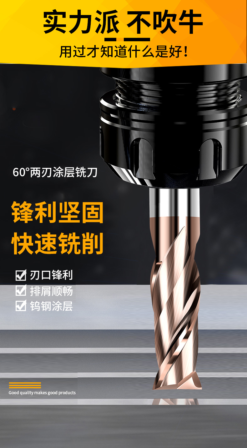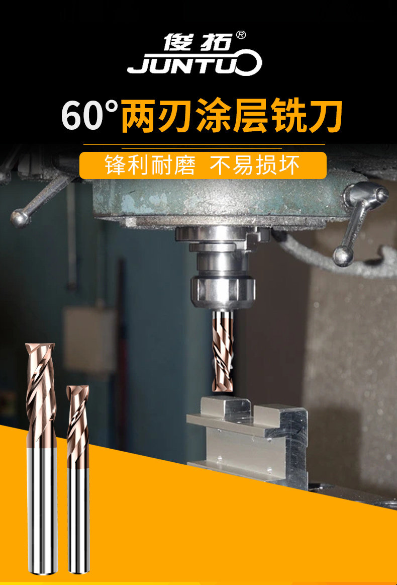 俊拓60度钨钢铣刀2刃键槽涂层硬质合金铣刀CNC不锈钢专用数控刀具