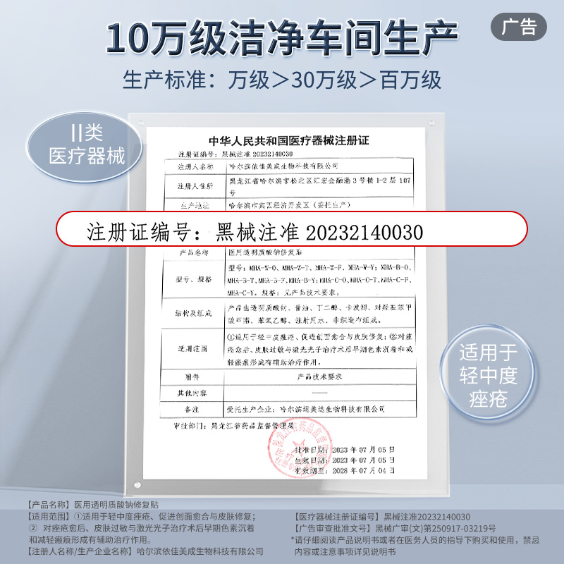 稳健白膜医用透明质酸修复冷敷贴医美术后补水械号非面膜胶原蛋白