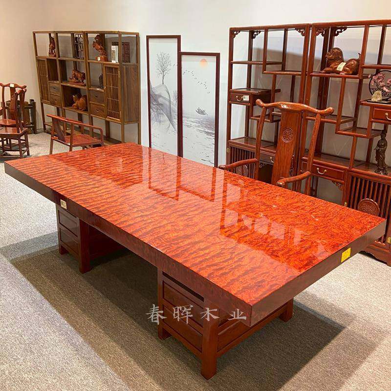 巴花实木大板茶桌原木红木办公书桌餐桌鬼脸水波纹巴西花梨木茶台