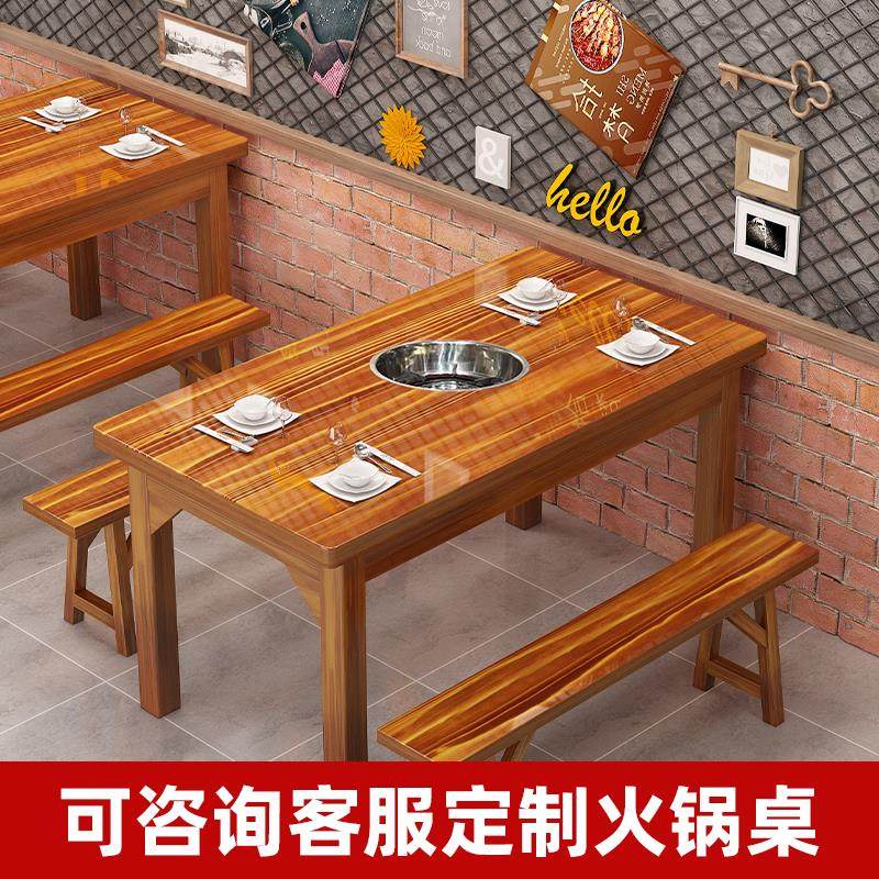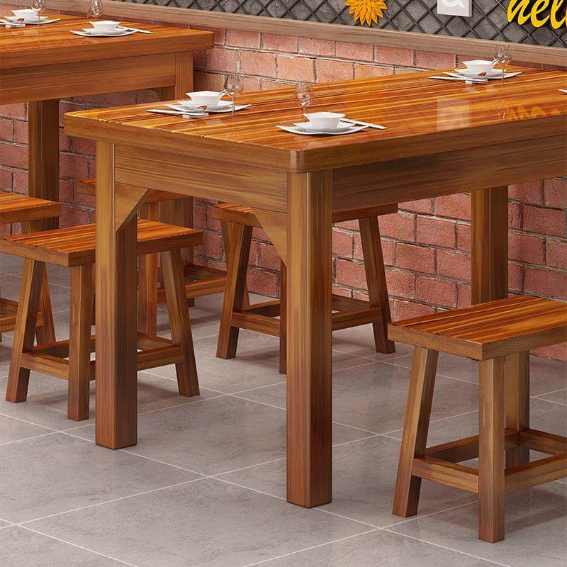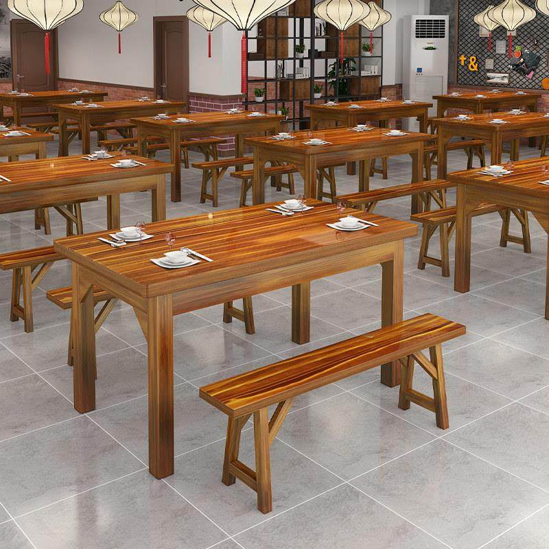 实木餐桌长方形吃饭桌子商用面馆小吃快餐店烧烤火锅饭店桌椅组合