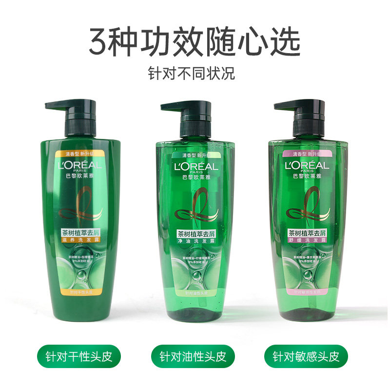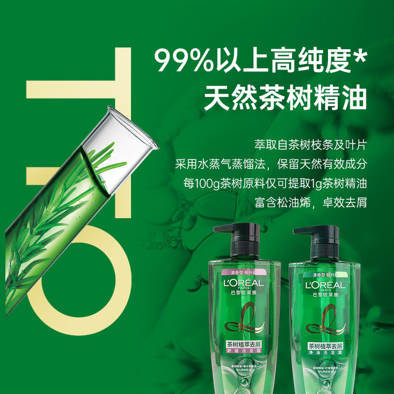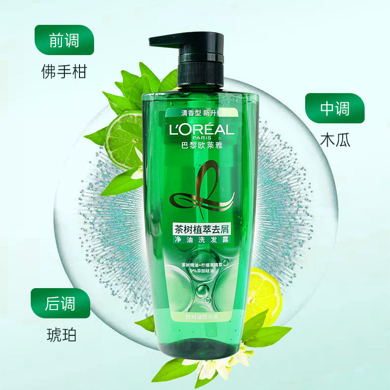 欧莱雅茶树植萃去屑洗发水精油止痒去油头皮控油舒缓无硅油水杨酸