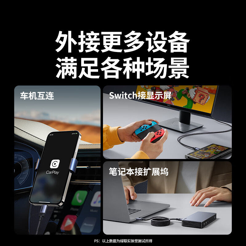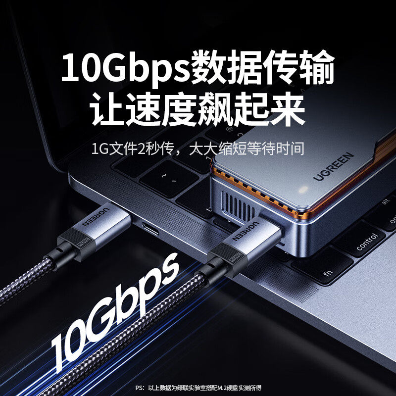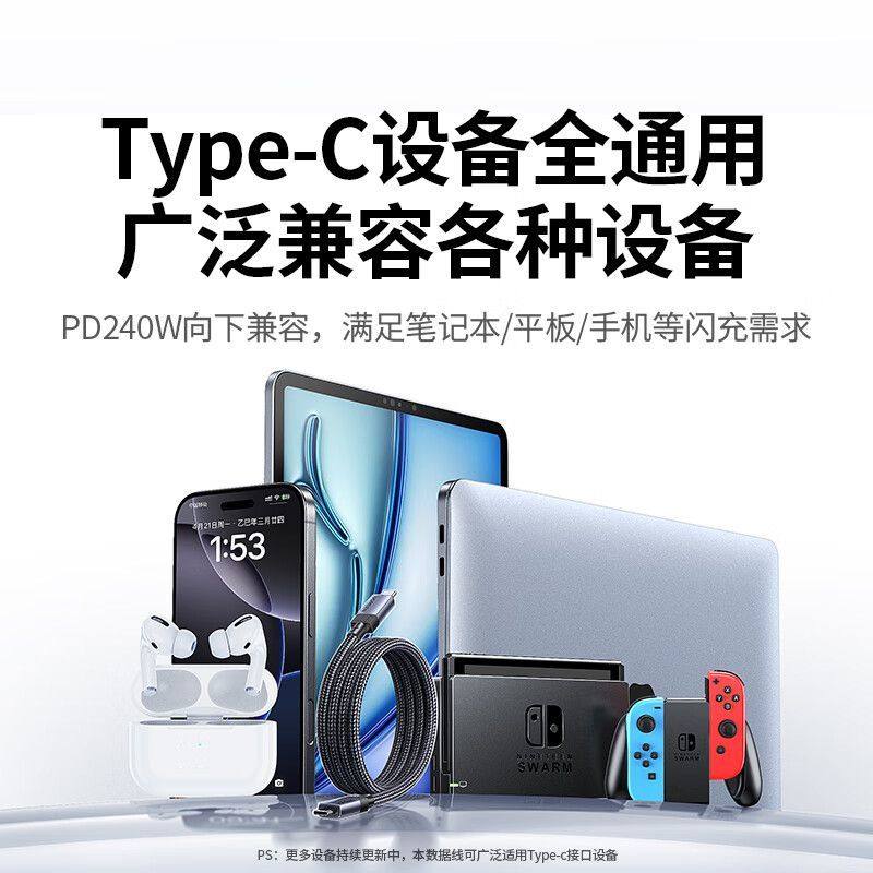 绿联usb3.2gen2全功能数据线适用苹果16iphone15充电线240W快充音视频投屏显示器电脑高速传输清双头typec