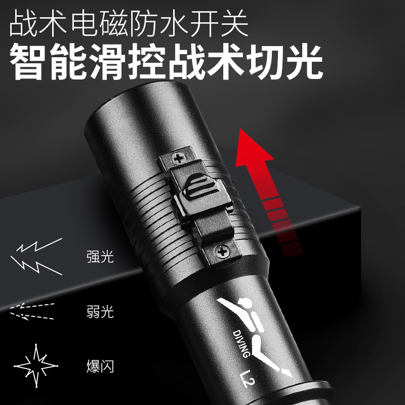 潜水手电筒充电水下专业磁控开关照明强光防水专用超亮赶海户外灯
