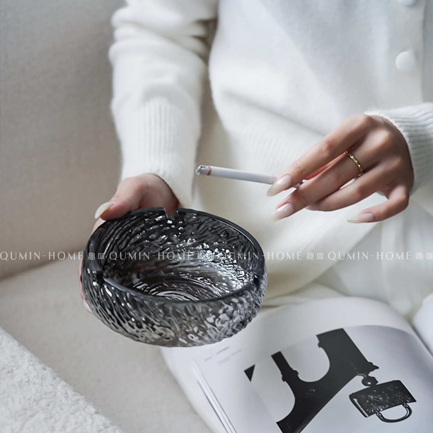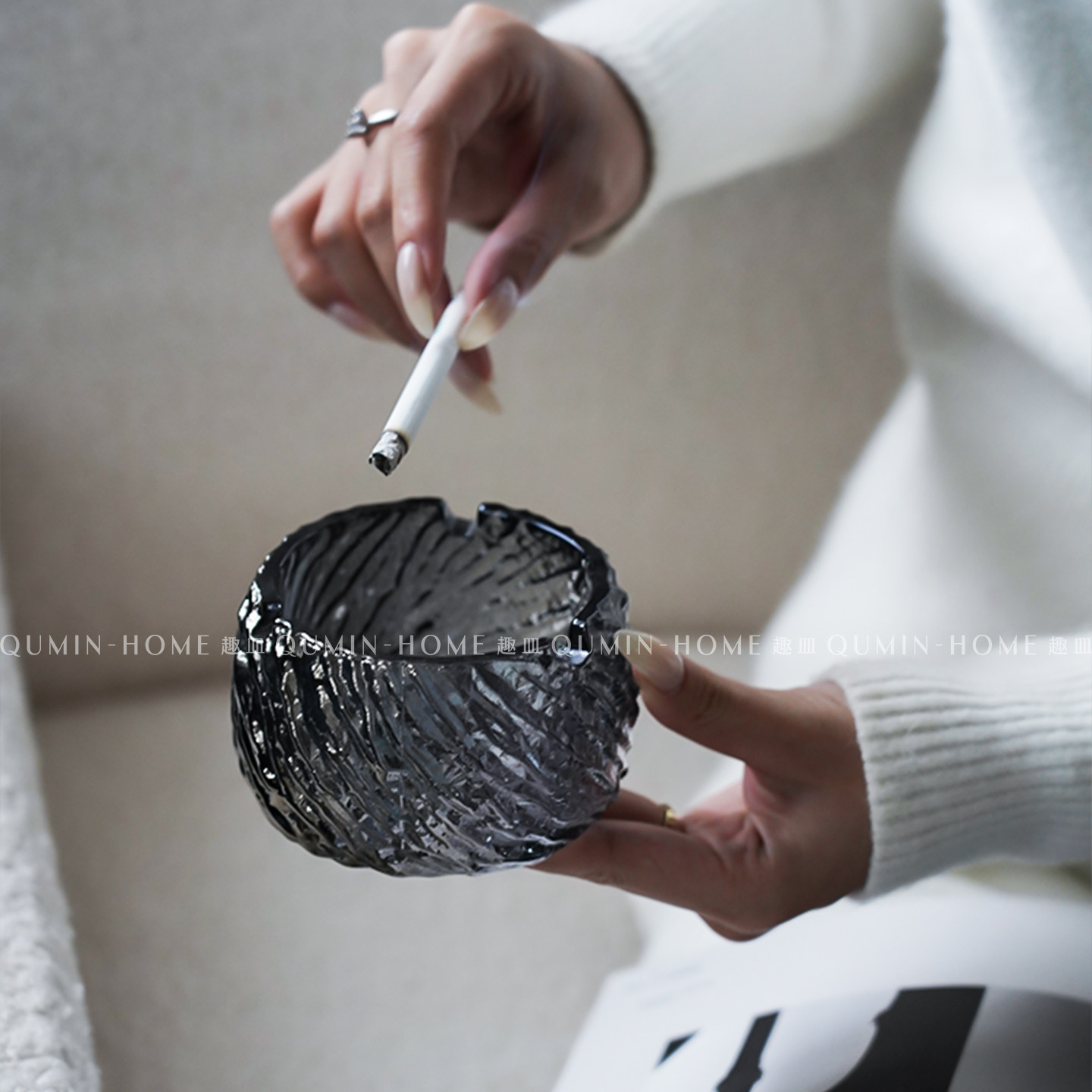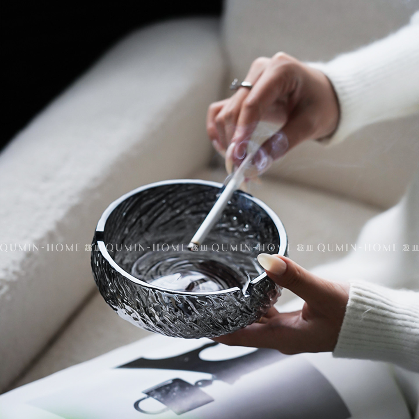趣皿轻奢透明玻璃烟灰缸家用客厅烟灰缸办公室高级感烟灰缸雪茄缸