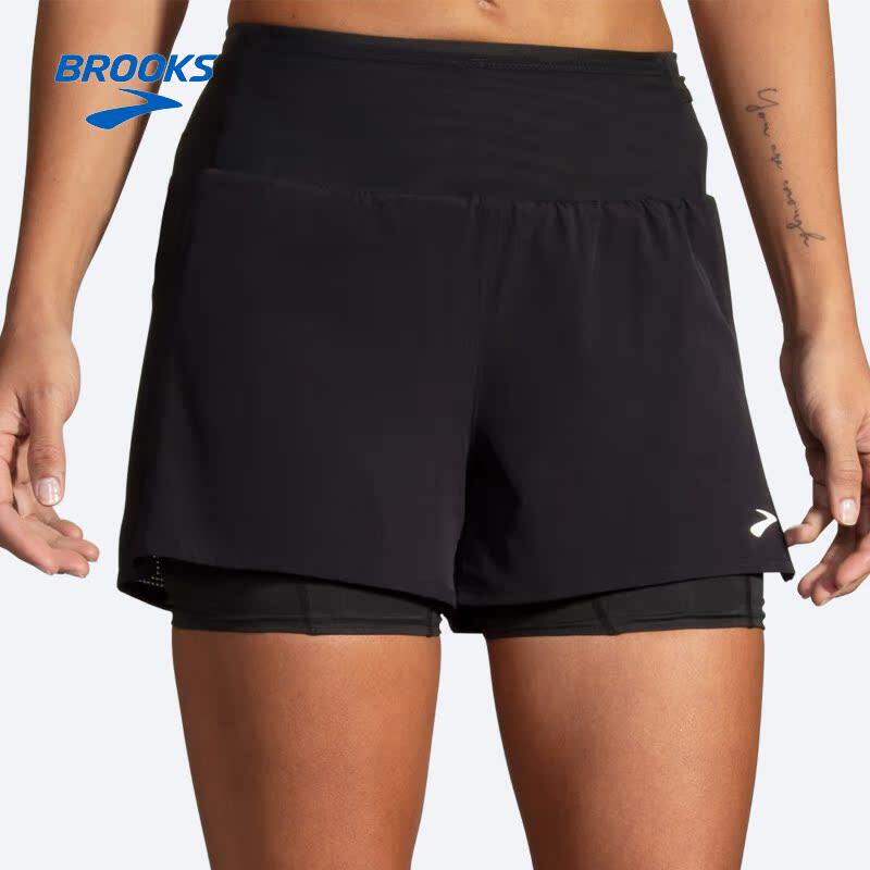 BROOKS布鲁克斯跑步健身短裤女士防水户外运动可收纳紧身越野裤子