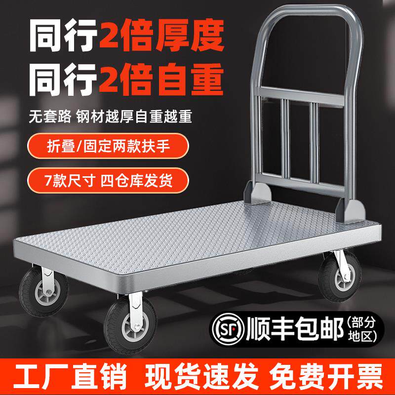 平板车手推车推货小拉车搬运车加厚钢板载重王四轮拖车折叠拉货车