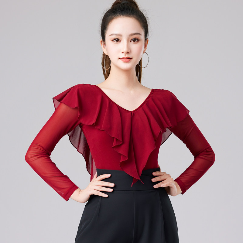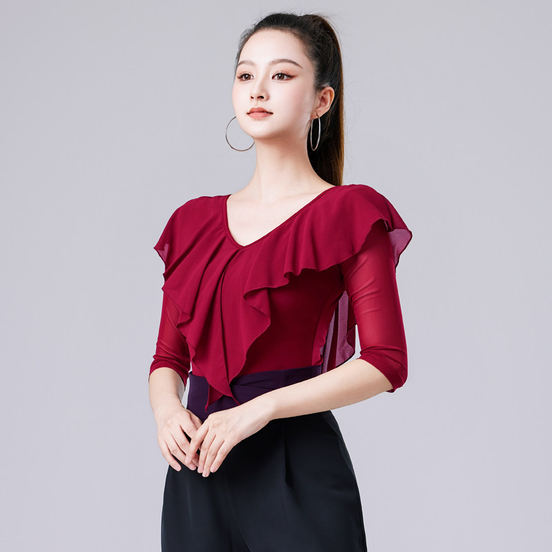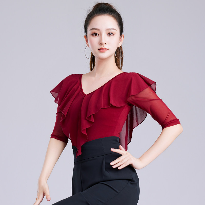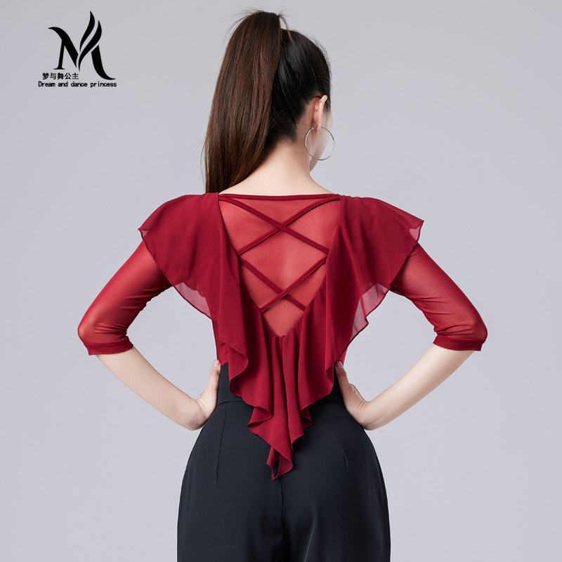 摩登舞专业舞蹈服女交谊舞拉丁舞上衣美背网纱时尚气质演出服新款
