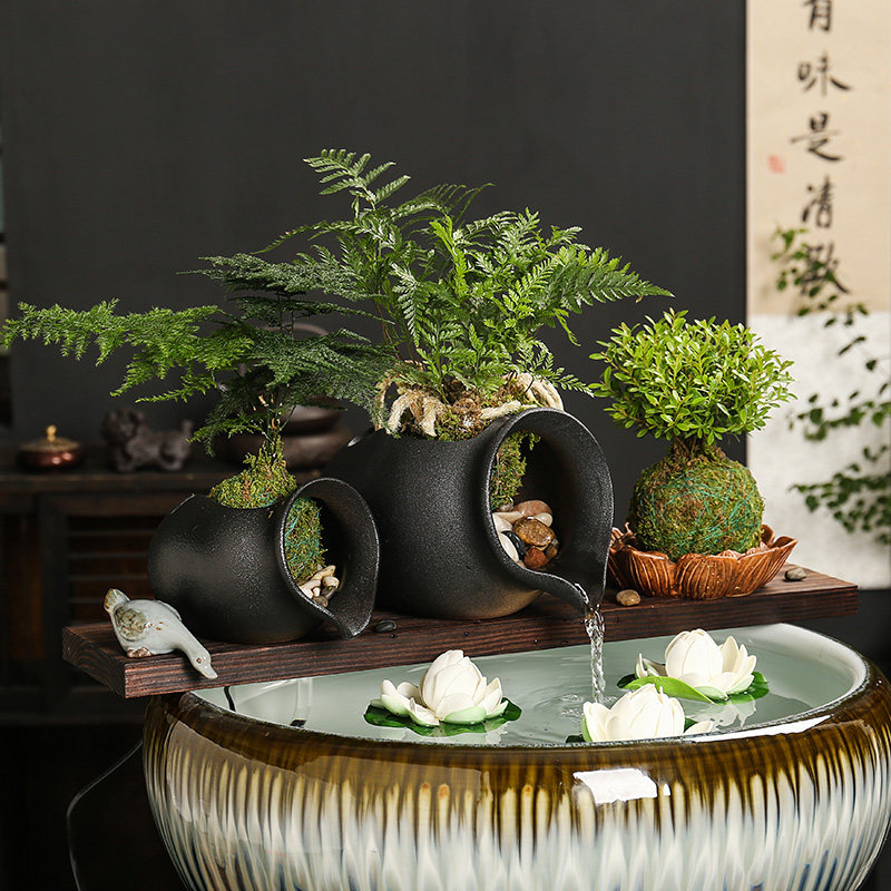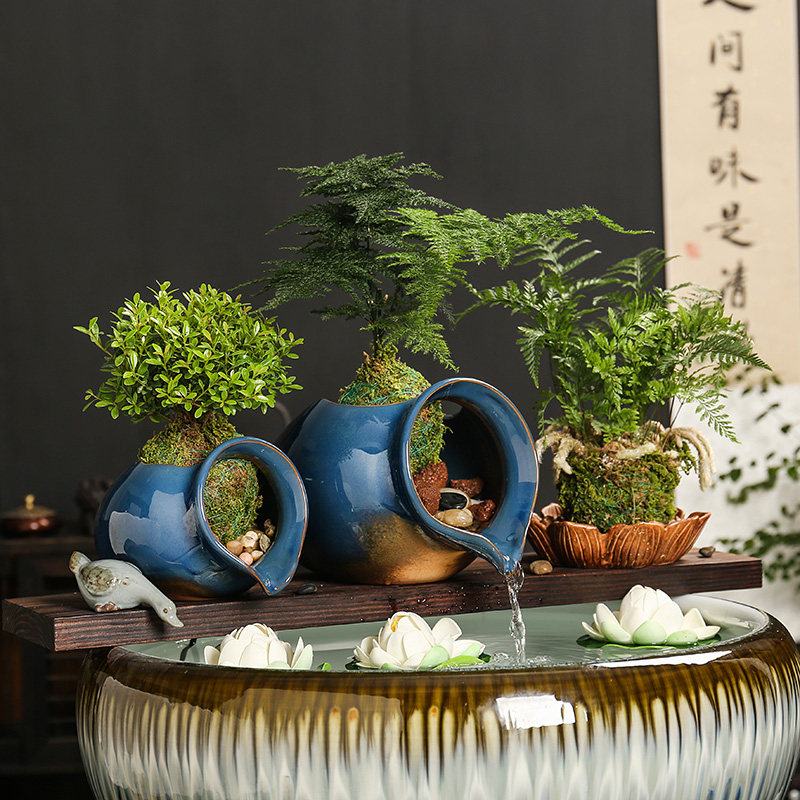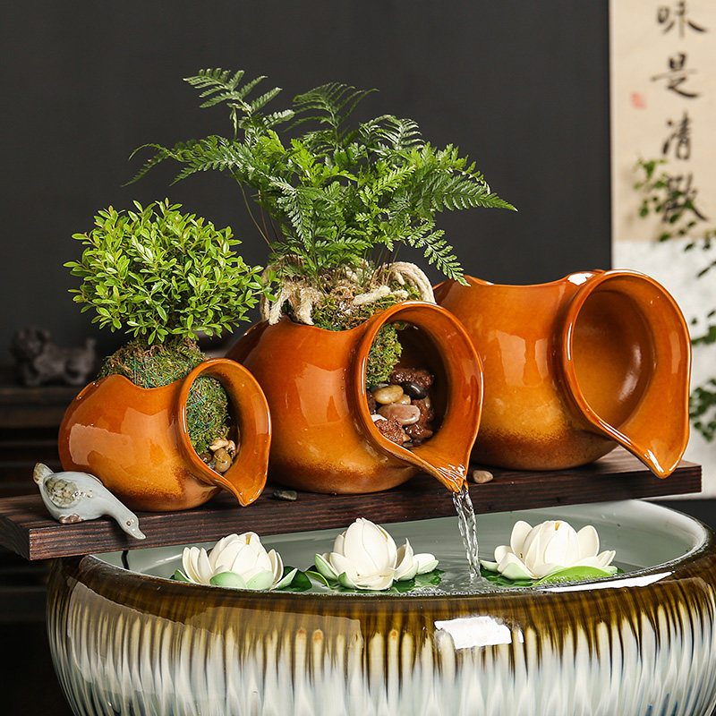 推荐理由:生态流水鱼缸开口陶瓷罐摆件循环过滤懒人缸配件庭院花园造景装饰