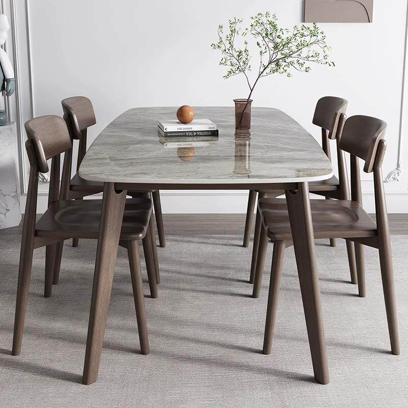 北欧轻奢蓝色理想新款全实木岩板餐桌椅组合简约侘寂风小户型家用