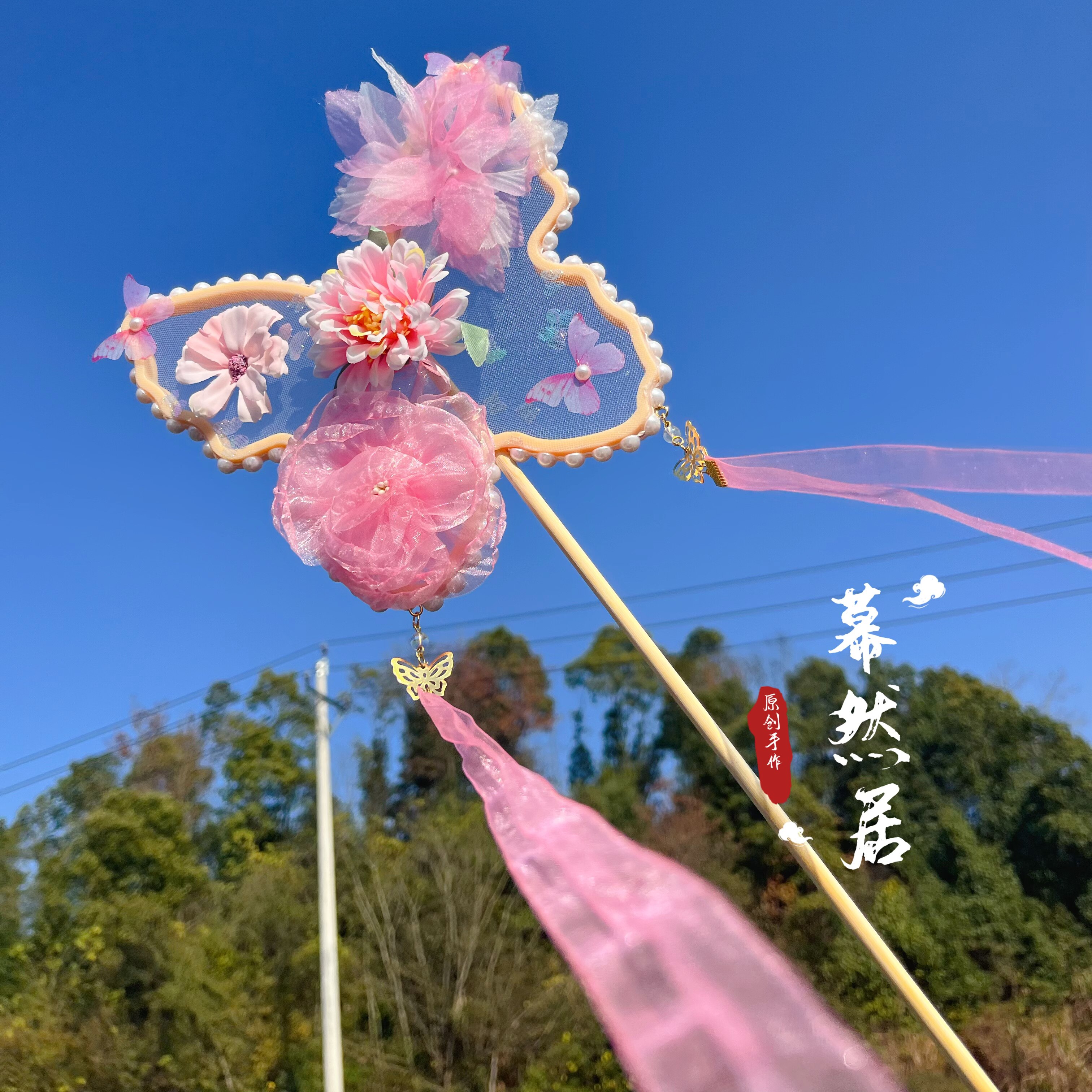 幕然居原创蝴蝶绢花团扇异形古代新中式cos古典舞手持lolita汉服