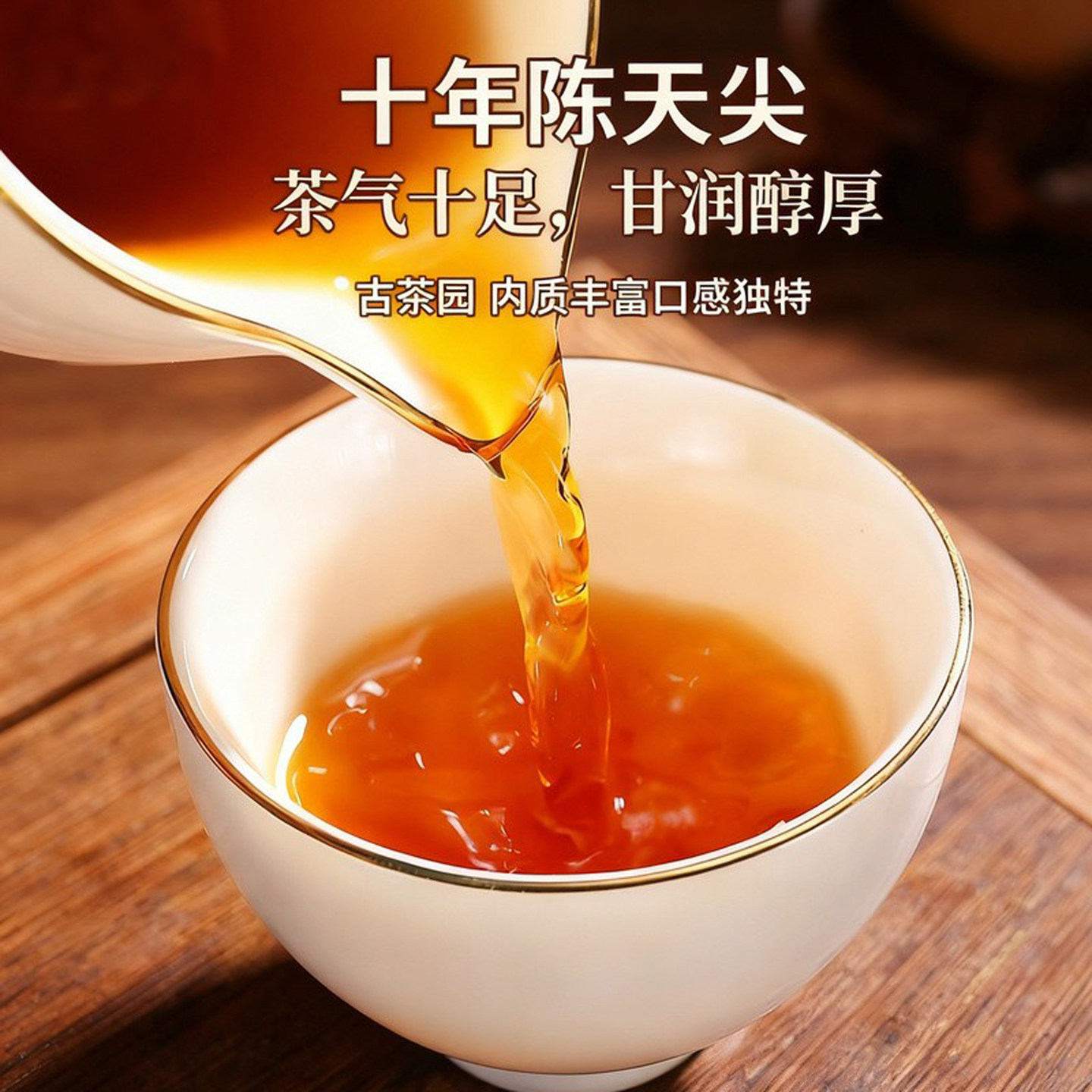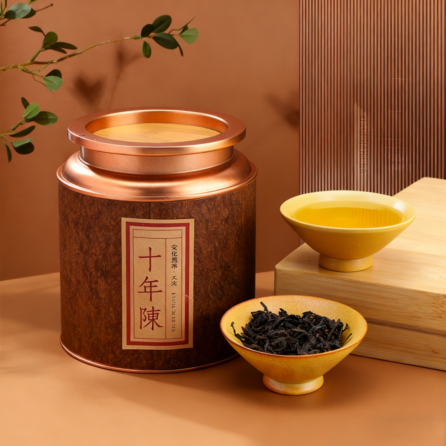 安化黑茶湖南特产正品 十年陈天尖茶叶罐装伴手礼非金花茯砖茶
