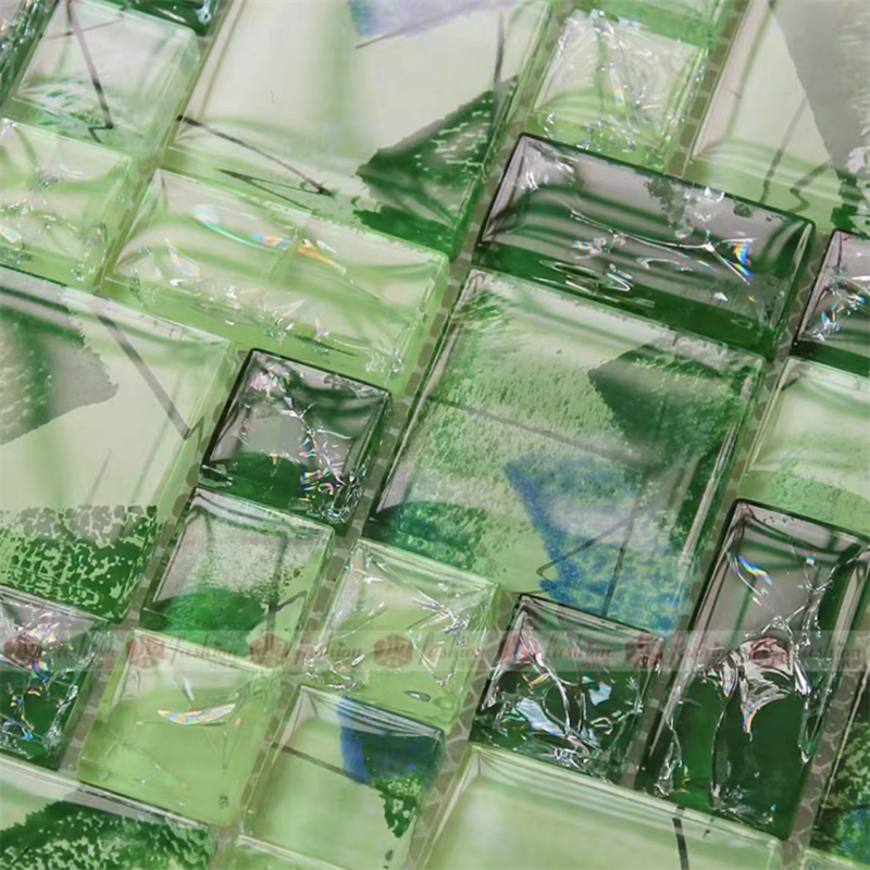 水晶玻璃蒙沙马赛克手绘绿红色游泳池厨房背景墙卫生间瓷砖墙贴