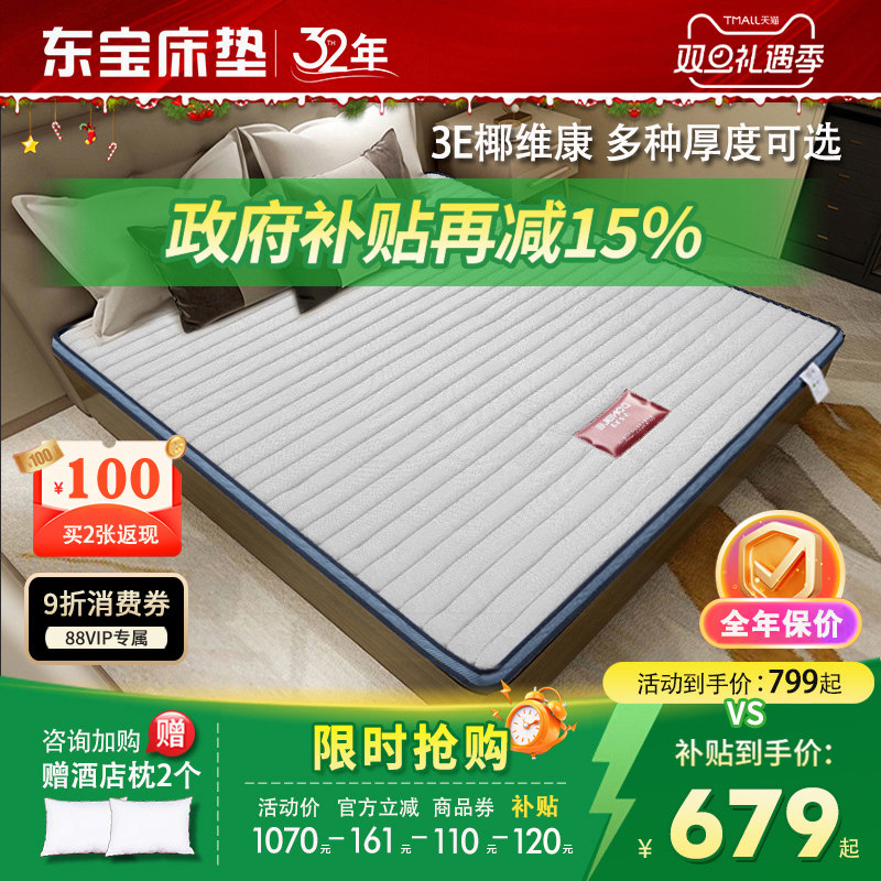 东宝床垫 椰维康硬垫婴儿护脊椎儿童1.2米棕垫椰棕榻榻米政府补贴
