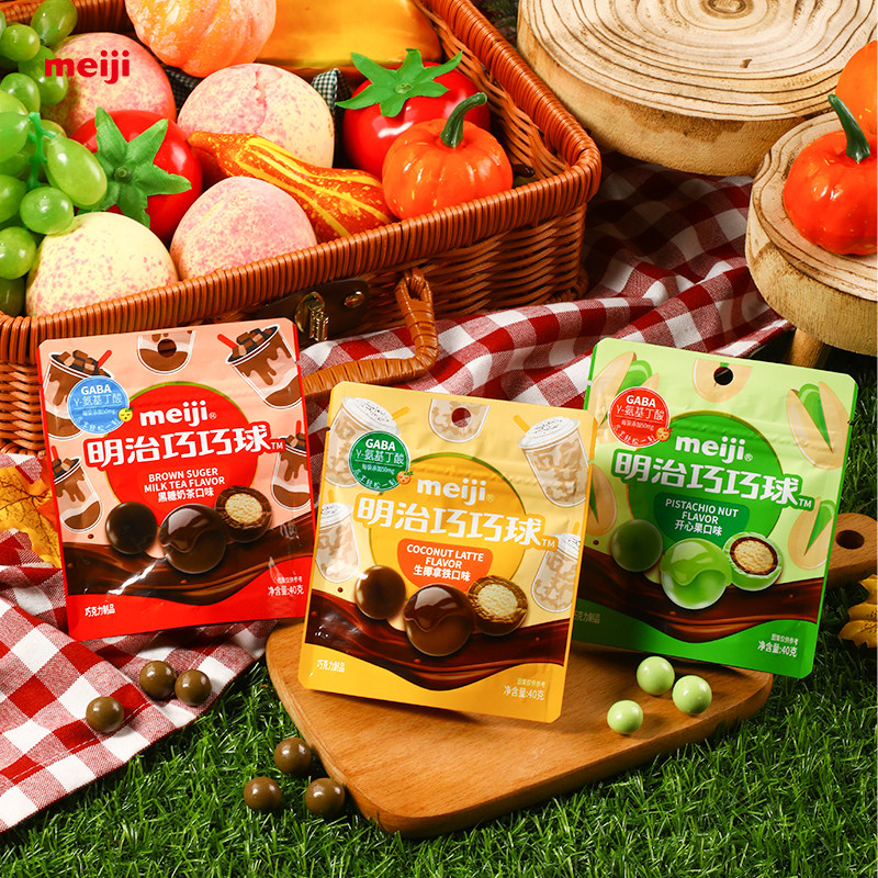 meiji明治巧巧球巧克力生椰拿铁/开心果/黑糖奶茶含GABA氨基丁酸