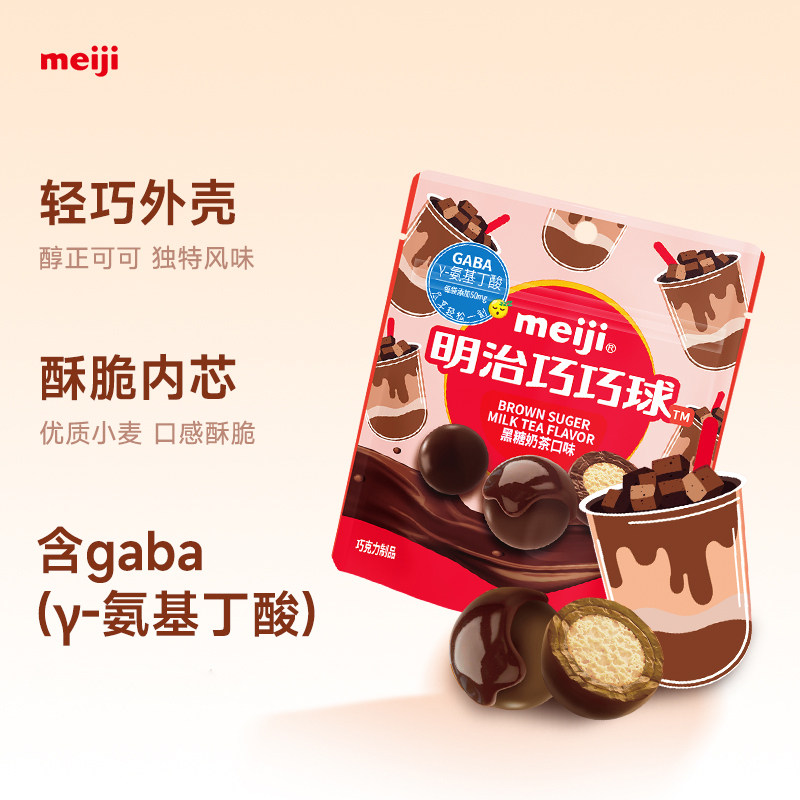 推荐理由:meiji明治巧巧球巧克力生椰拿铁/开心果/黑糖奶茶含GABA氨基丁酸