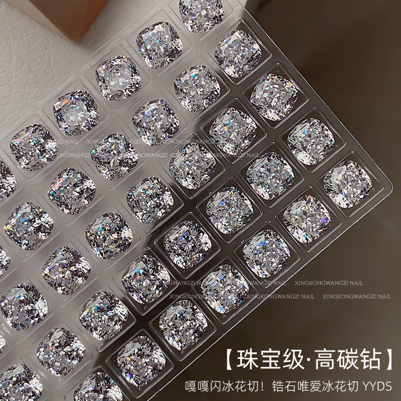 美甲钻饰品珠宝级高精碳锆爆闪冰花切指甲K9钻石装饰品透明小配饰