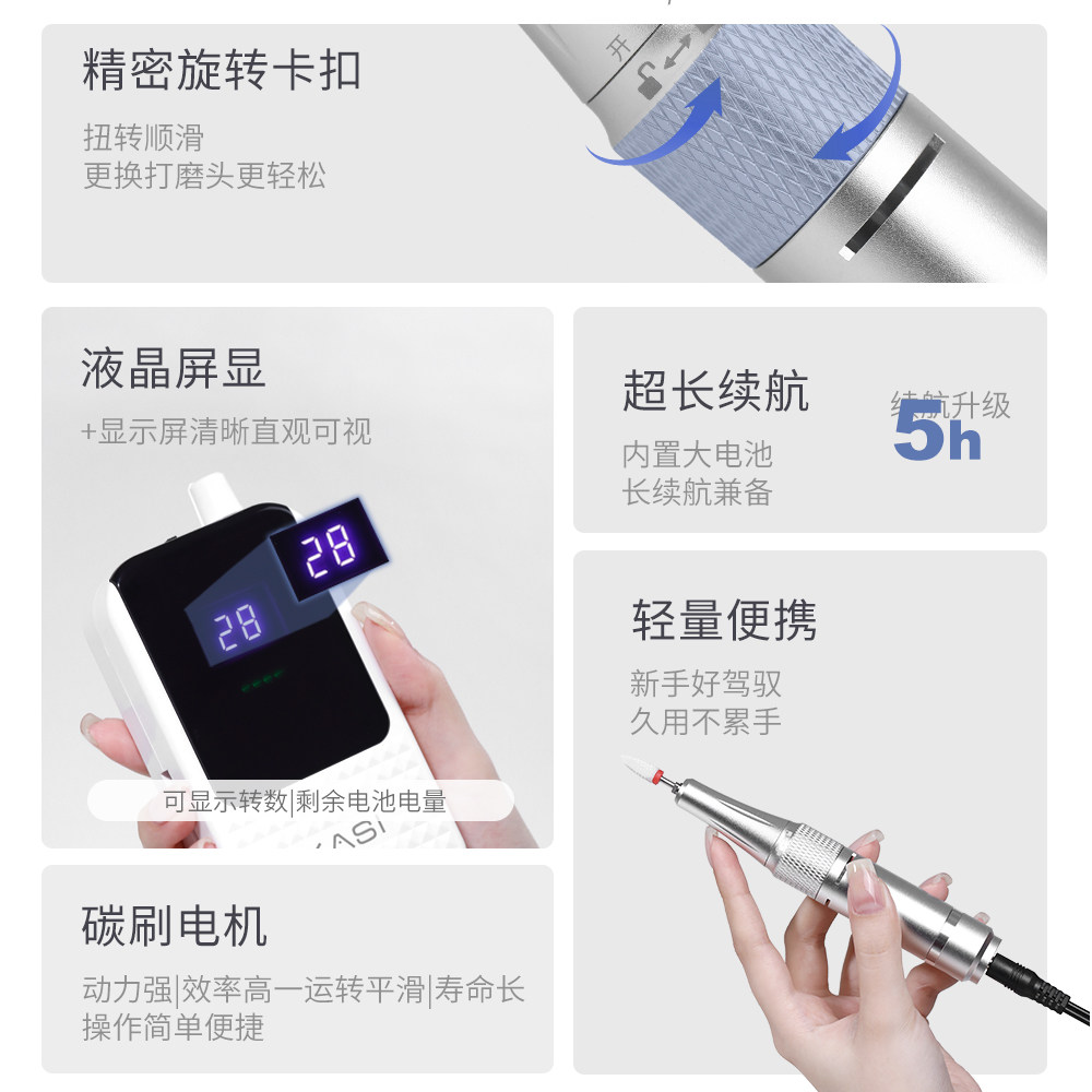 KaSi美甲便携蓄电打磨机卸甲去死皮专用新款小型家用电动打磨笔