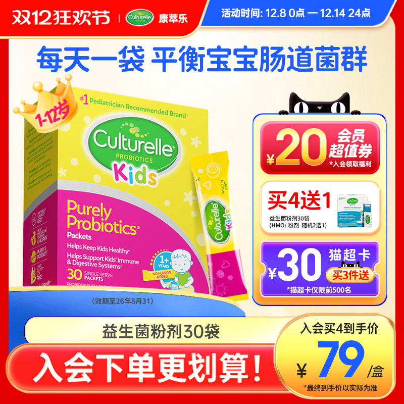 康萃乐儿童益生菌宝宝婴幼儿调理肠胃鼠李糖乳杆菌lgg粉冲剂30袋