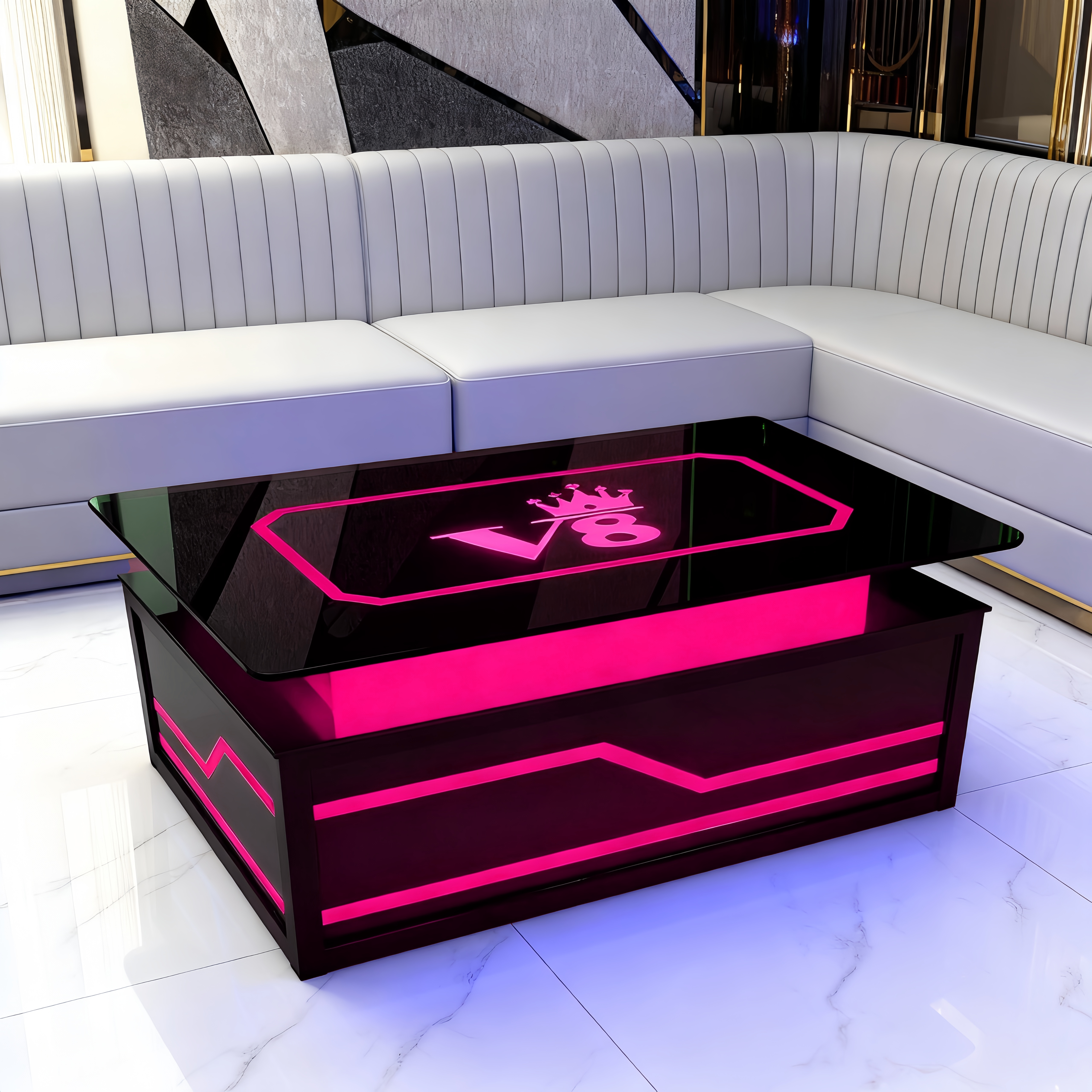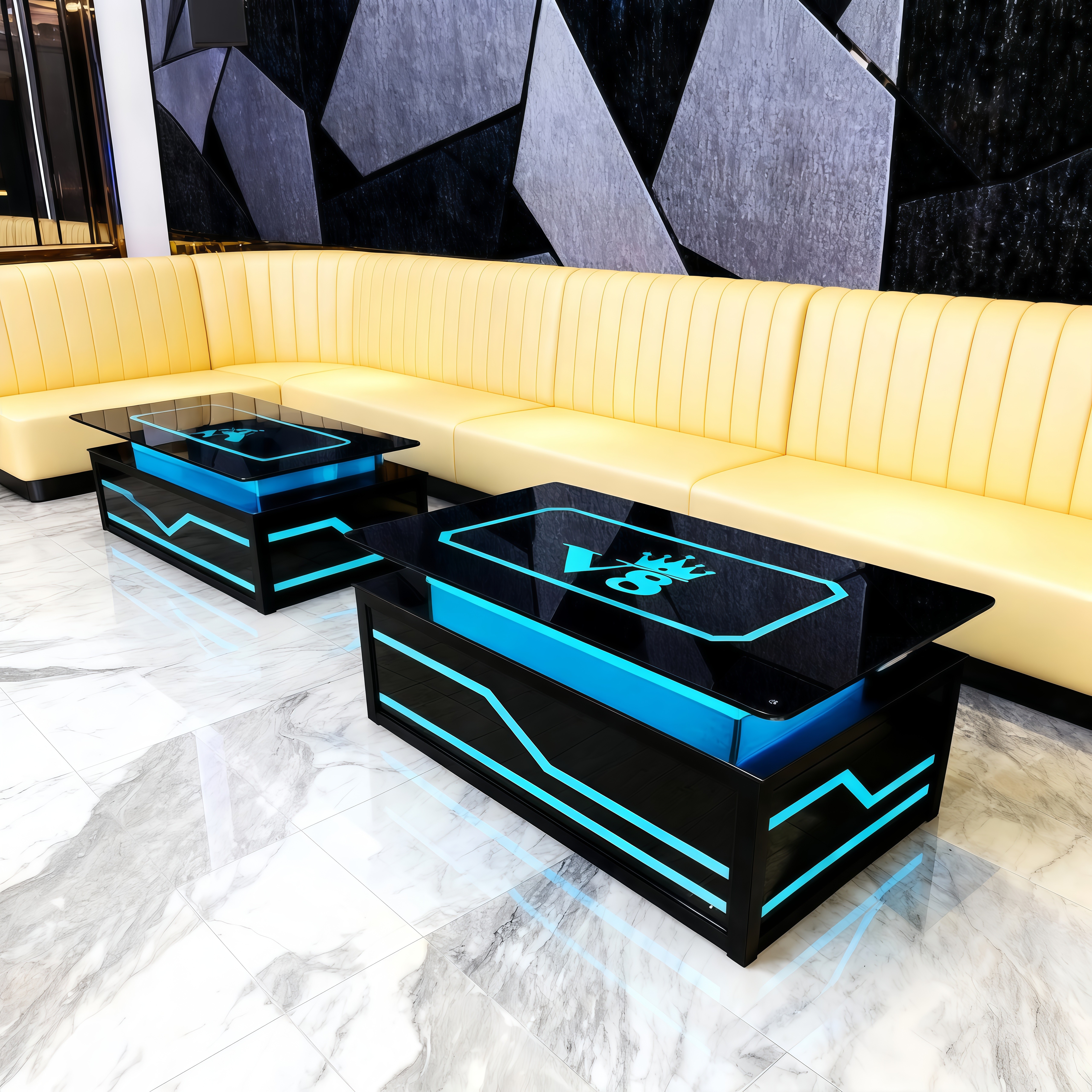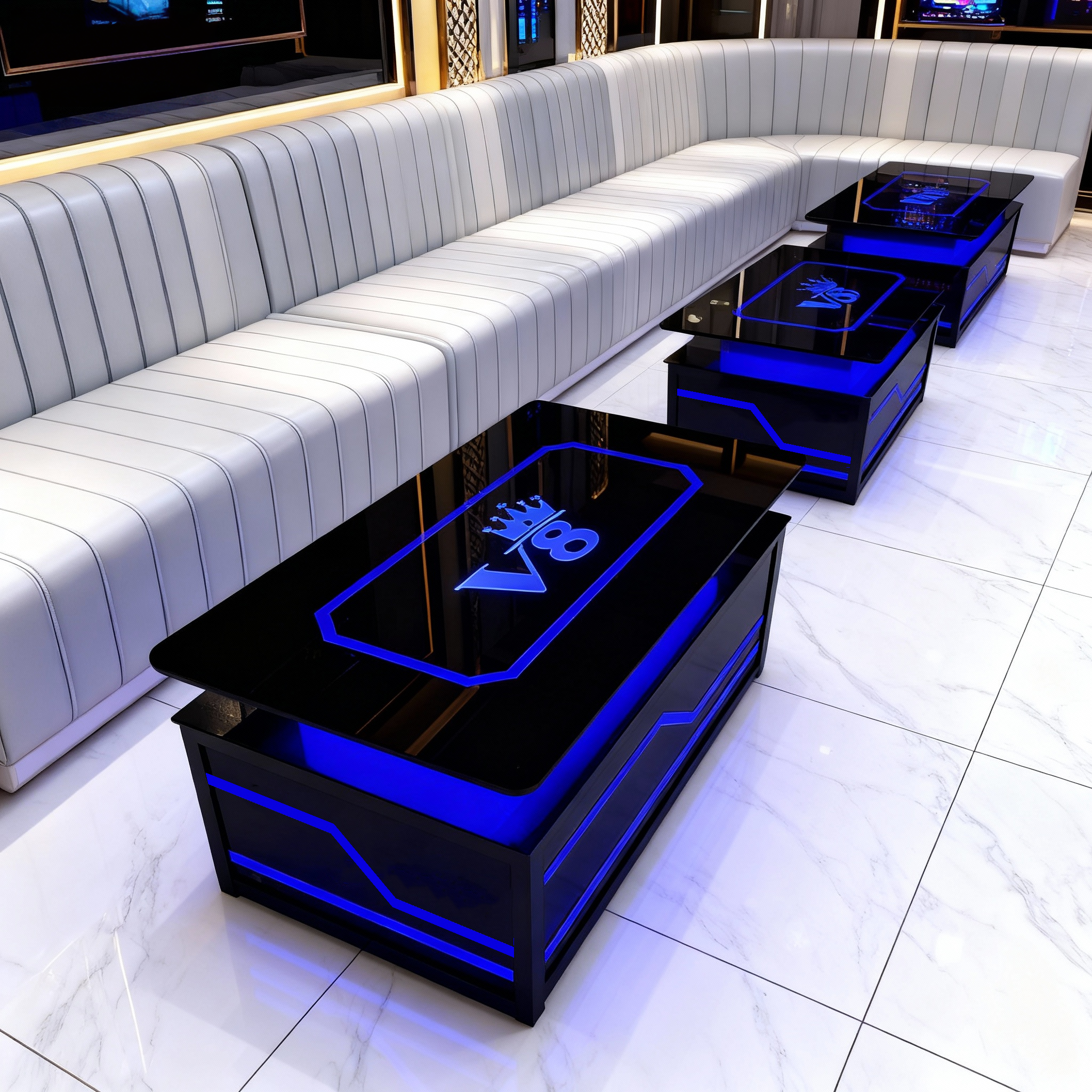 ktv茶几发光双层专用钢化玻璃七彩桌子酒吧不锈钢茶台大理石简约