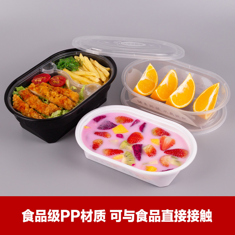 推荐理由:美式1000椭圆形加厚打包盒一次性餐盒外卖快餐便当盒水果捞盒黑色