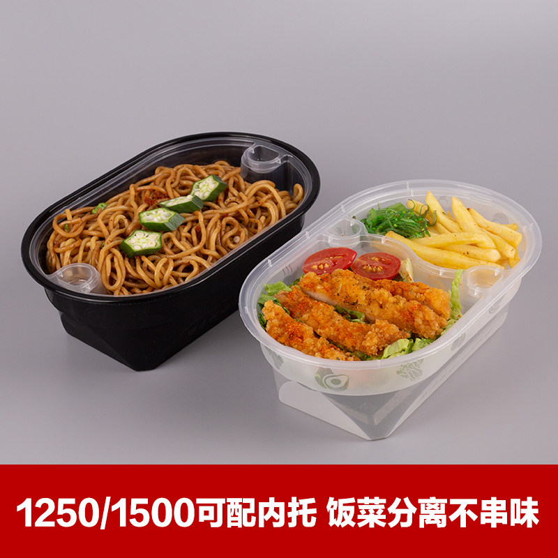 美式1000椭圆形加厚打包盒一次性餐盒外卖快餐便当盒水果捞盒黑色