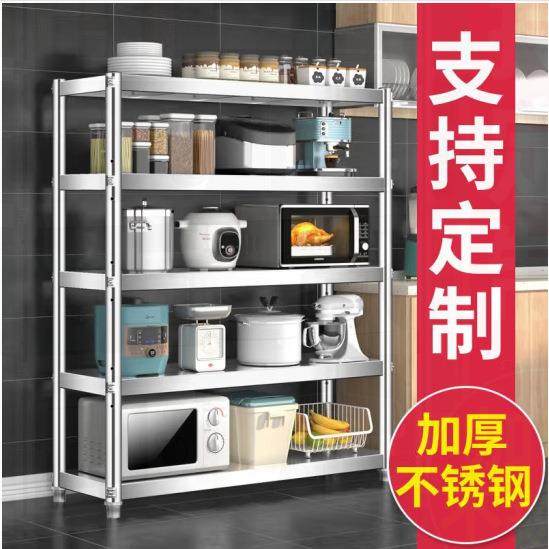 现货不锈钢厨房置物架落地五层家用货架微波炉储物架子杂物收纳架
