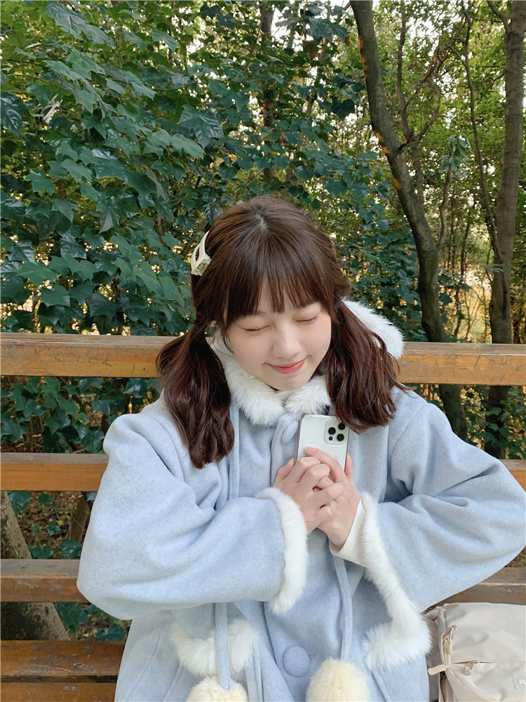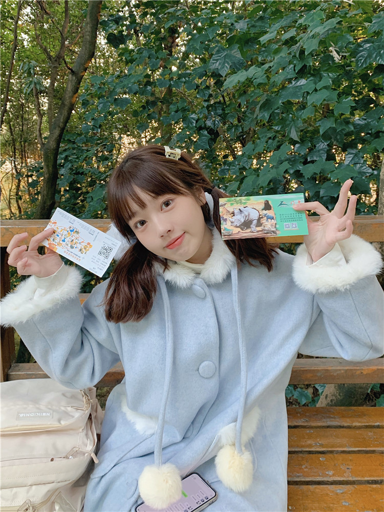 推荐理由:蛋包饭餐厅兔毛呢子外套大衣女冬季中长款加棉加厚日系小个子上衣