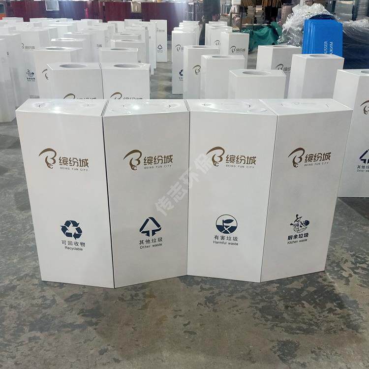 高档商场室内不锈钢垃圾桶金属喷塑组合式果皮箱摇摆翻盖垃圾箱