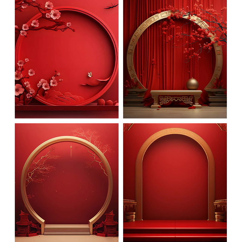 红色新年春节摄影背景布新中式红色喜庆全家福写真拍摄新年直播背