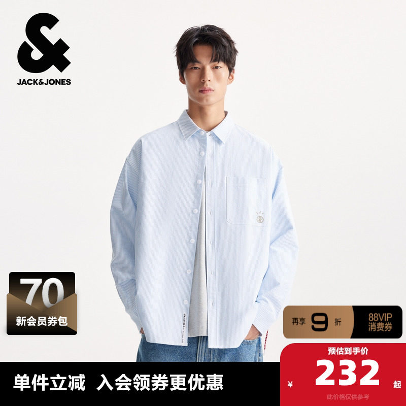 杰克琼斯奥特莱斯男装衬衫秋季2025年新款条纹全棉宽松翻领上衣