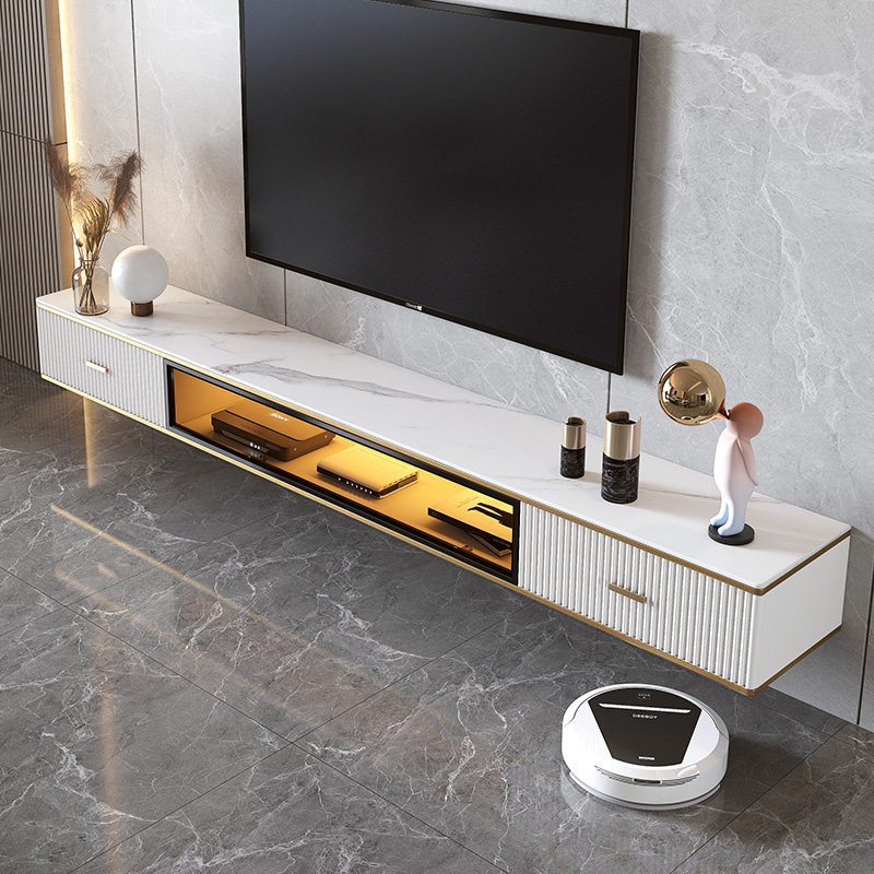 岩板悬空壁挂式电视柜现代简约轻奢茶几组合小户型挂墙客厅墙柜窄