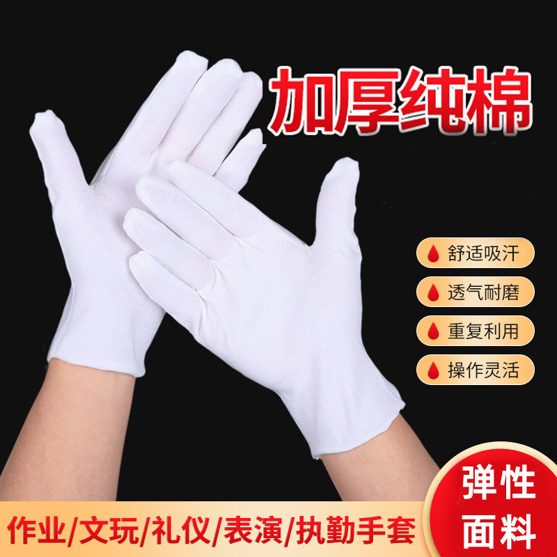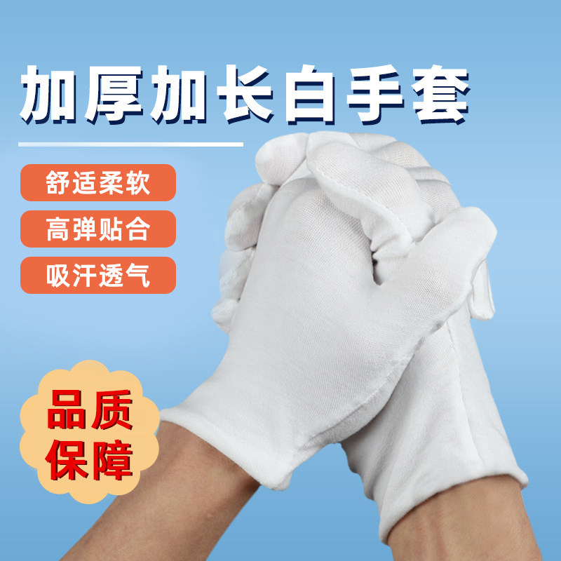 推荐理由:白手套纯棉薄款白文玩开车防晒盘珠礼仪耐磨工业劳保加长吸汗作业