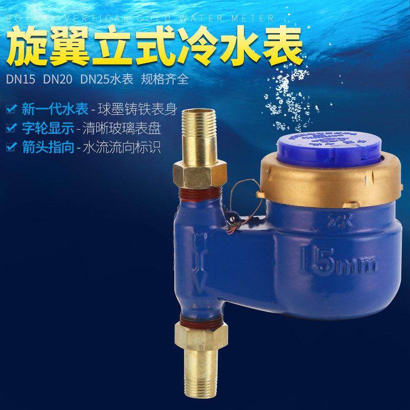 DN15立式水表上进下出热水机械家用自来水竖立装丝扣立式水出租房