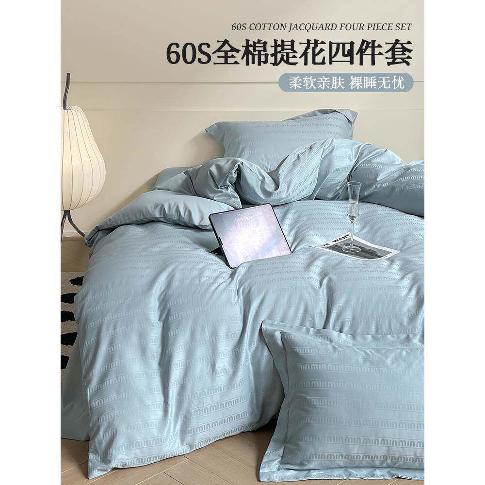 轻奢高级感60支提花四件套全棉纯棉2024新款床上用品被套床单床笠