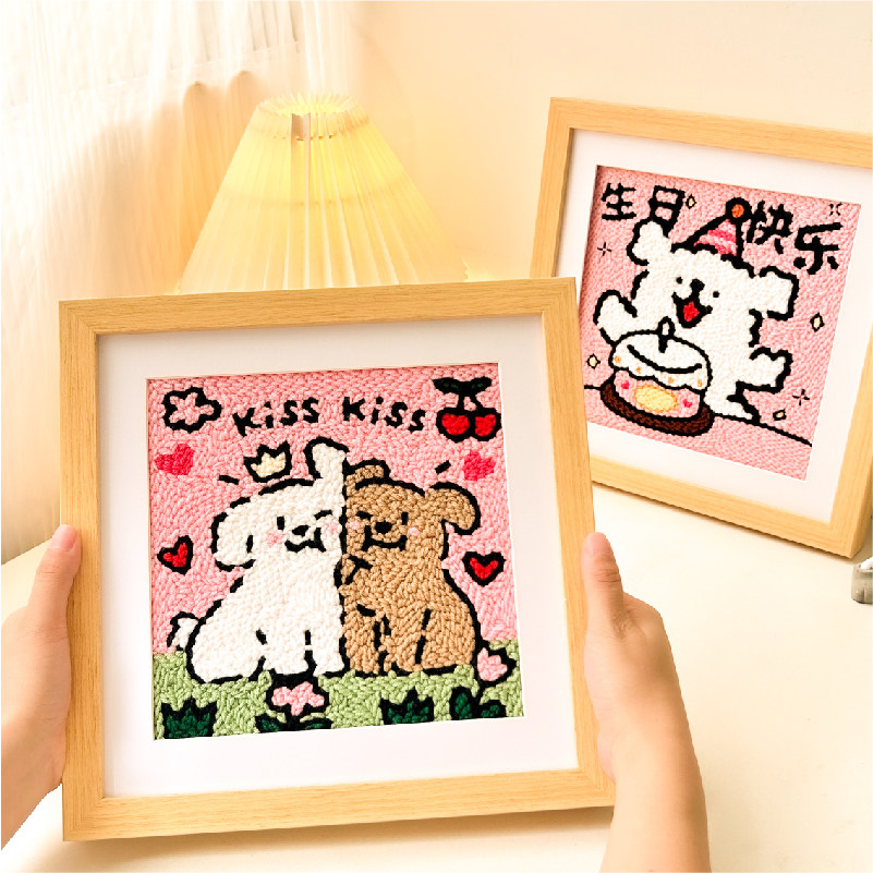 戳戳绣情侣礼物diy手工刺绣材料包可爱狗狗毛线画新手解压礼物