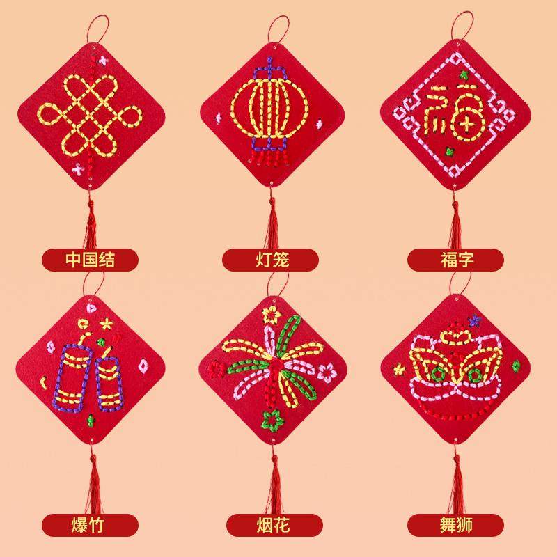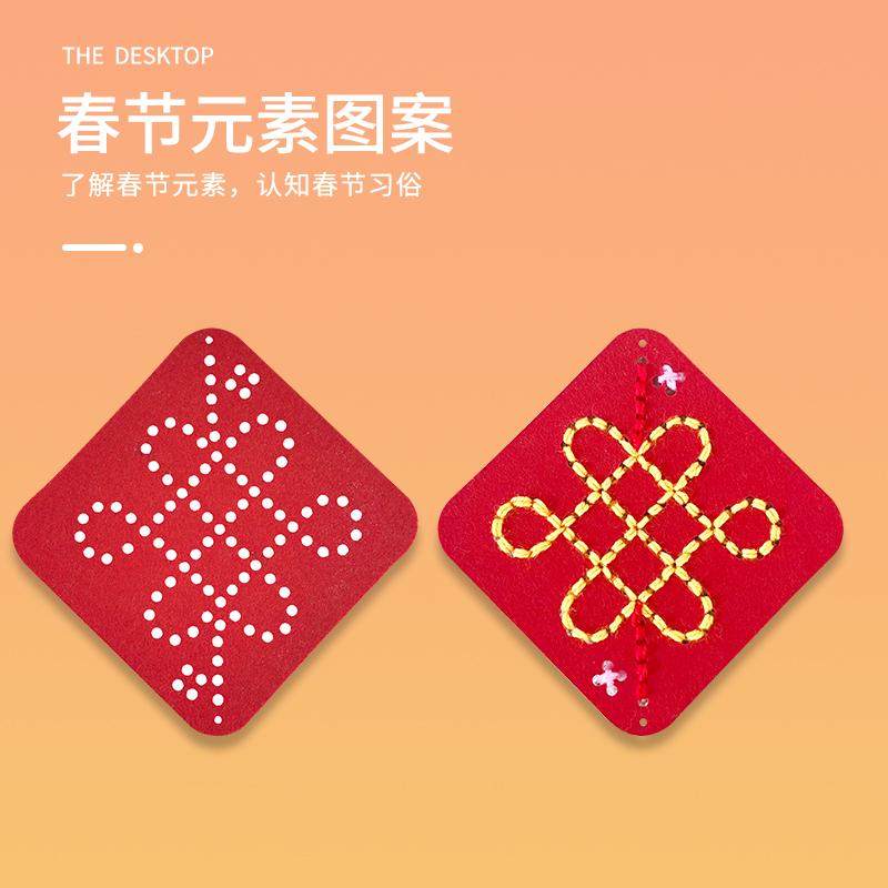 儿童春节手工编织diy缝工板刺绣中国结福字幼儿园新年创意材料包
