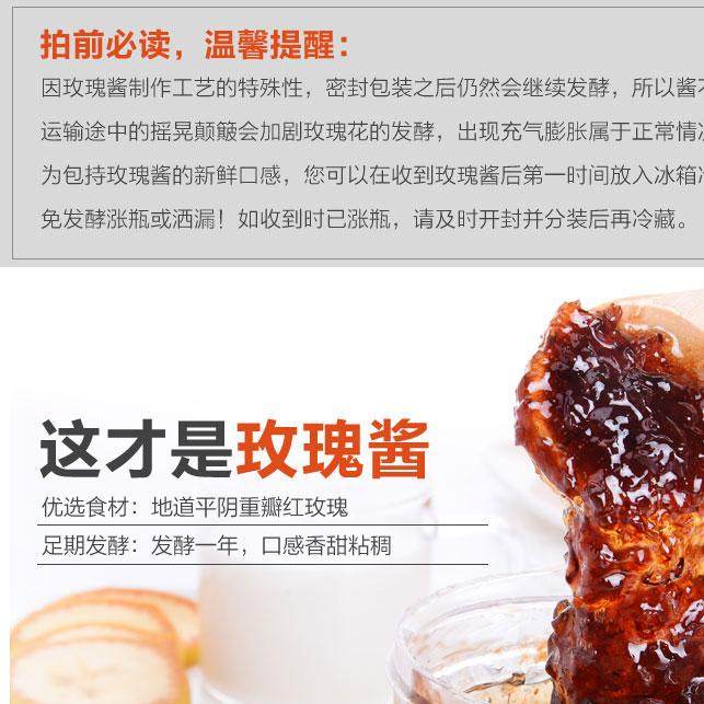 推荐理由:山东济南特产平阴玫瑰酱鲜花酱古法玫瑰酵素膏古法手工果酱500g