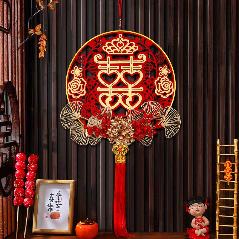 结婚喜字挂件婚房布置装饰婚礼女方卧室新房客厅挂饰福字中国结