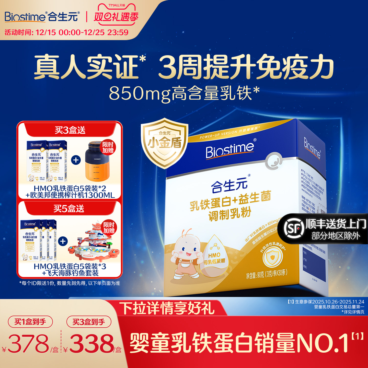 合生元小金盾HMO乳铁蛋白婴幼儿儿童30袋官方含免疫球蛋白体质好