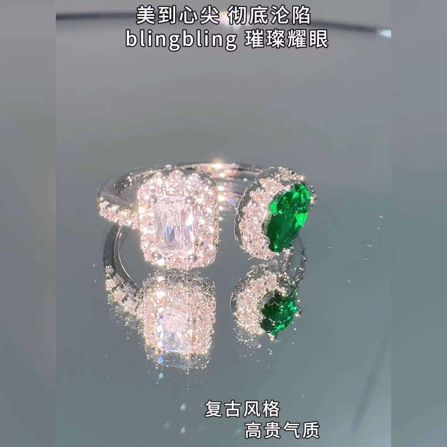 旭平【莱茵夜曲】复古绿方形蛋面开口戒指轻奢法式设计高级感指环