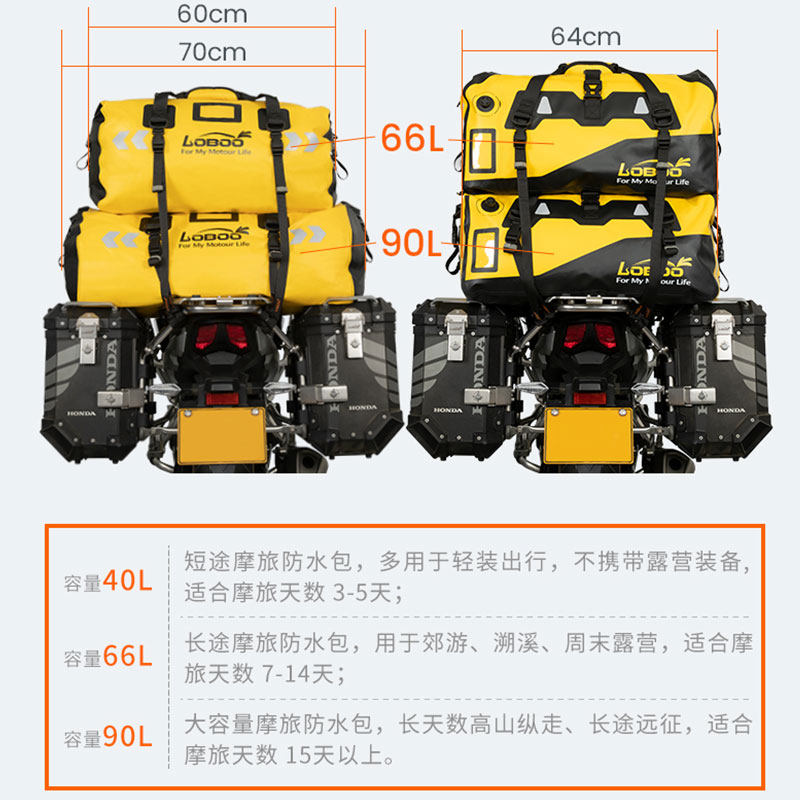 LOBOO萝卜摩托车后座防水包骑行装备机车边包头盔包背包摩旅驮包