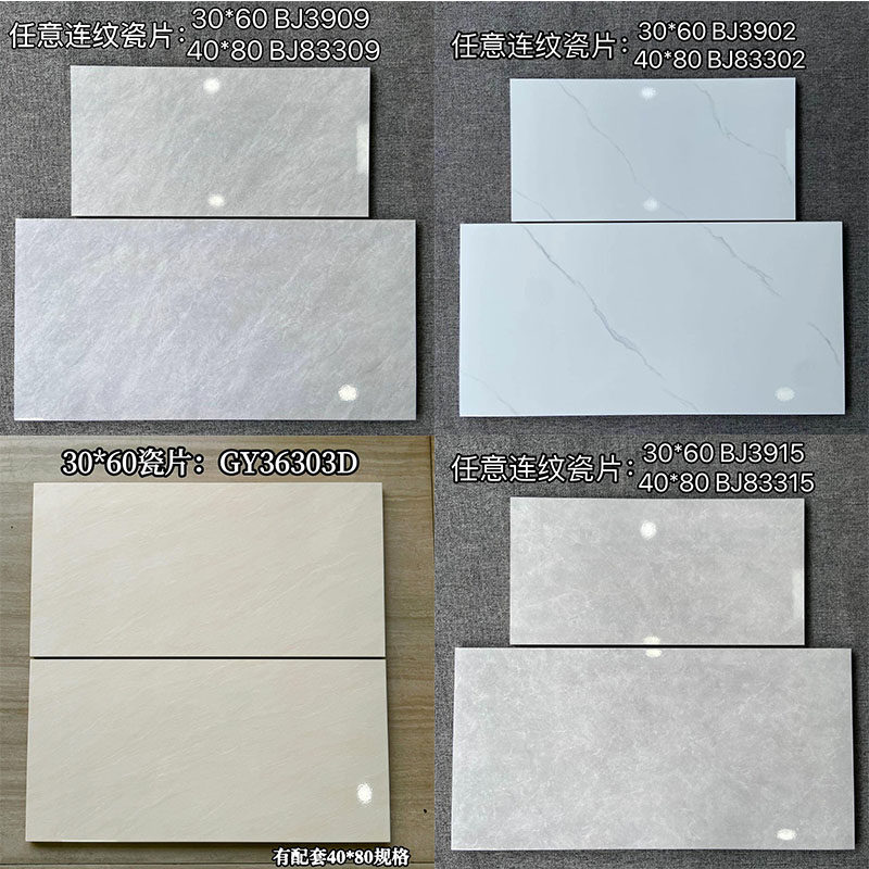 推荐理由:简约现代灰色瓷砖400X800厨房墙砖300x600阳台爵士白卫生间釉面砖