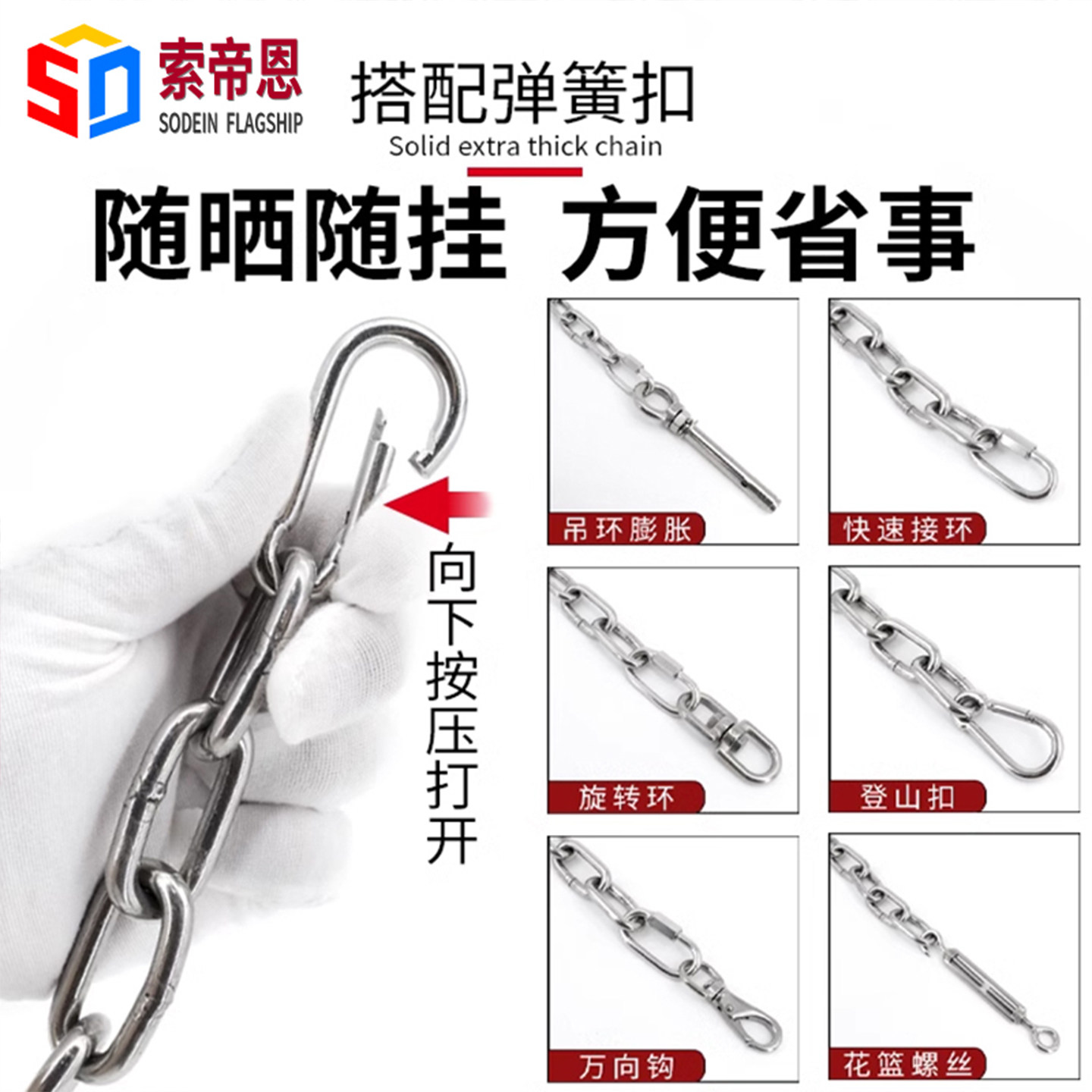 推荐理由:304不锈钢链条晒衣晾衣绳无缝铁环链条狗链