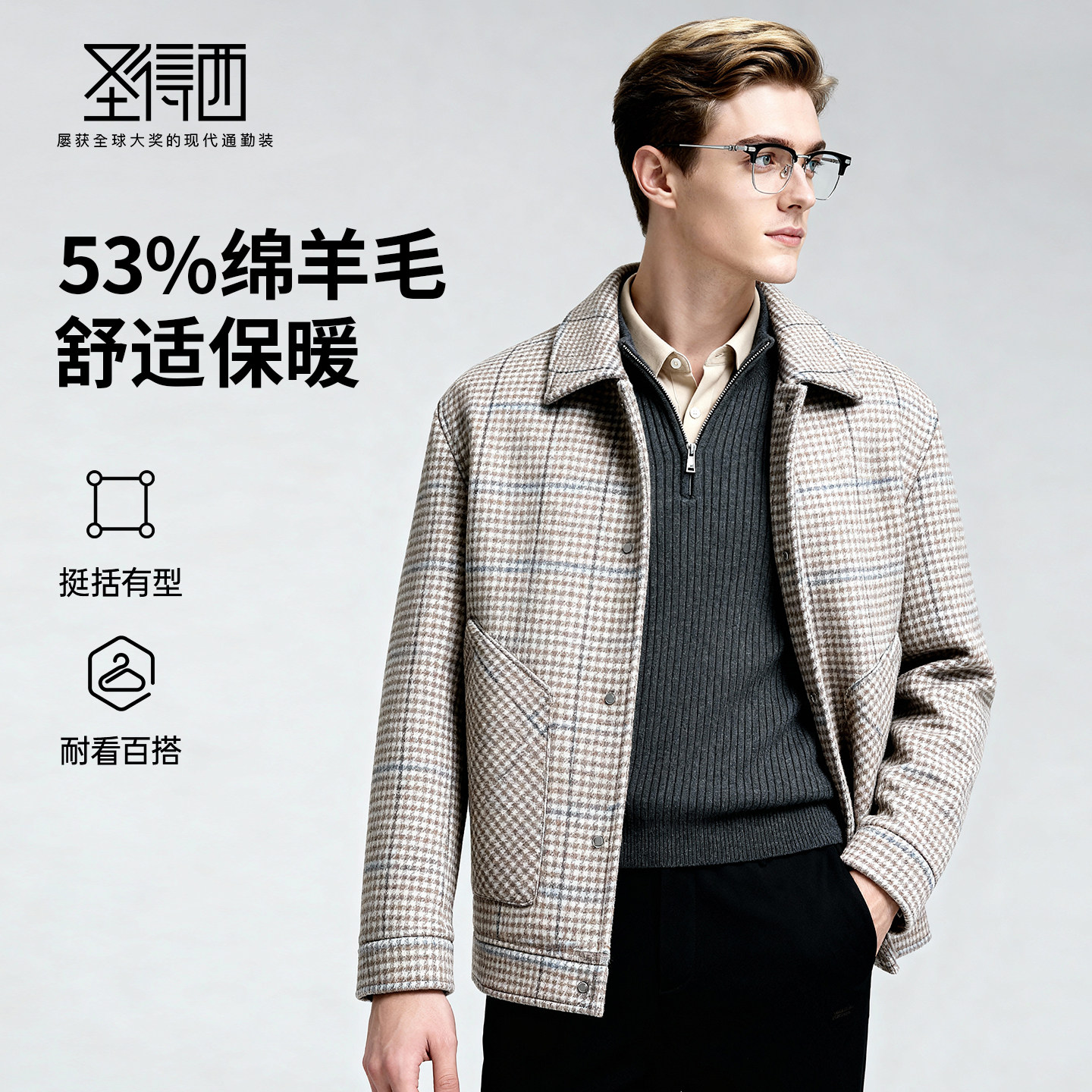 【门店同款】圣得西英伦风羊毛外套2025秋冬款经典千鸟格复古上衣