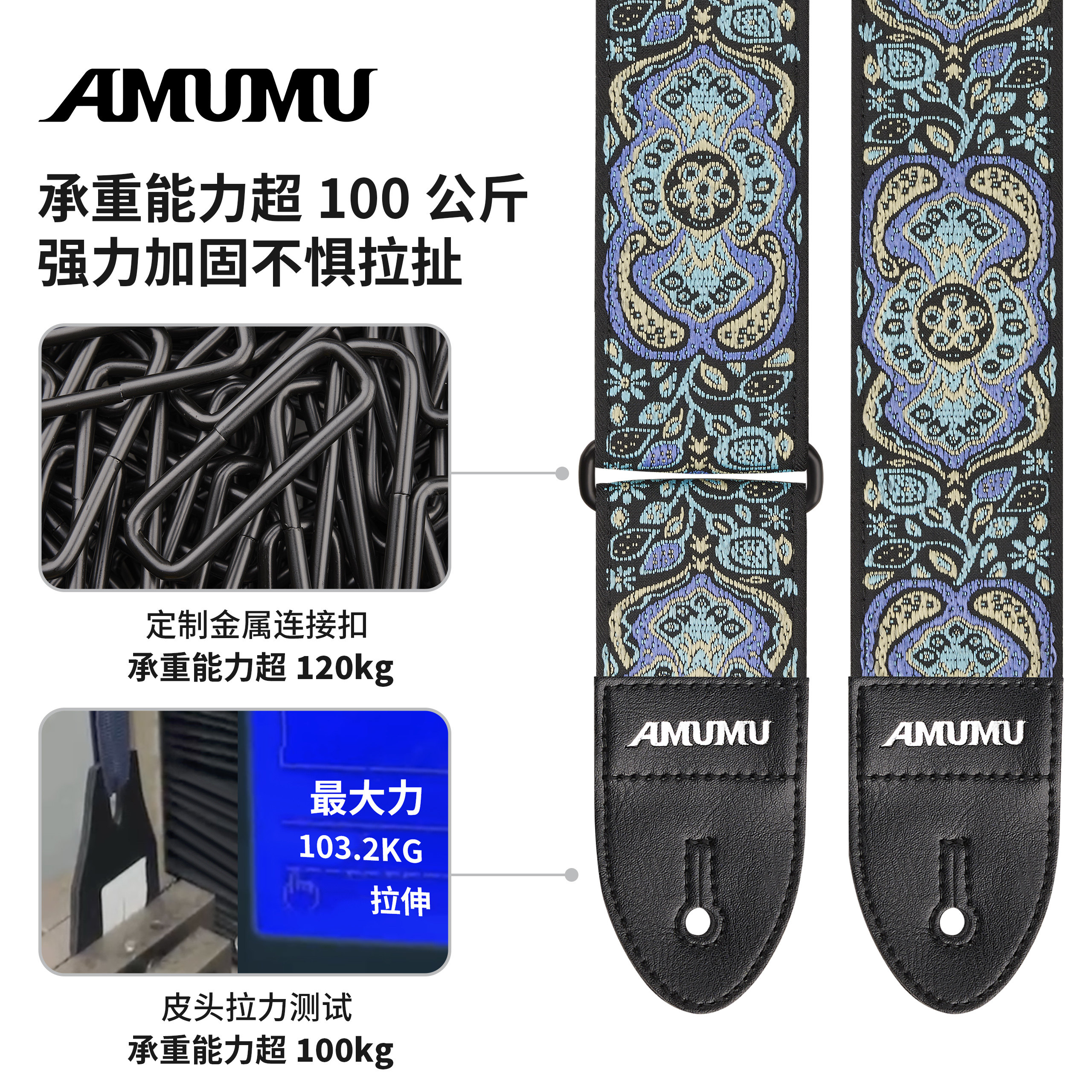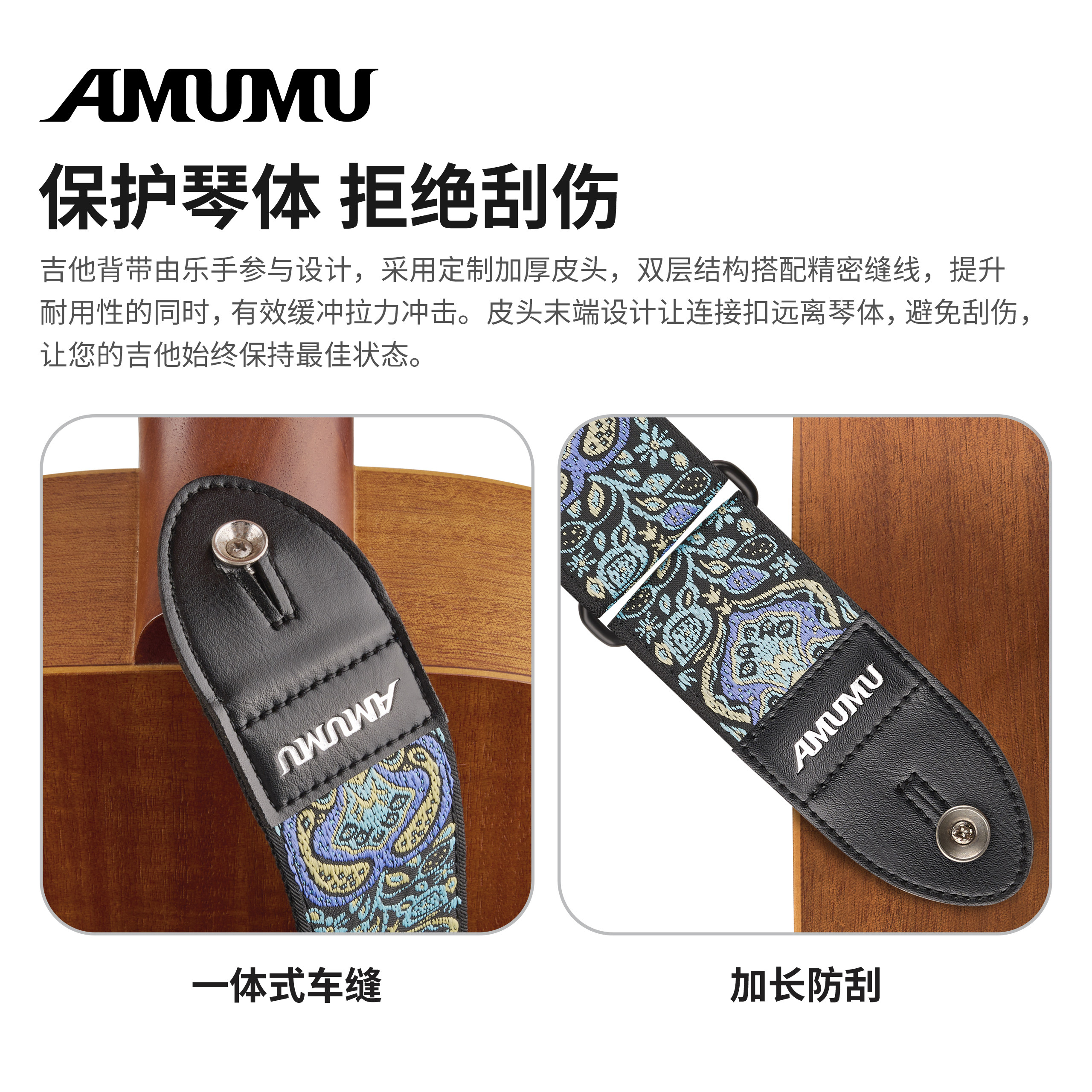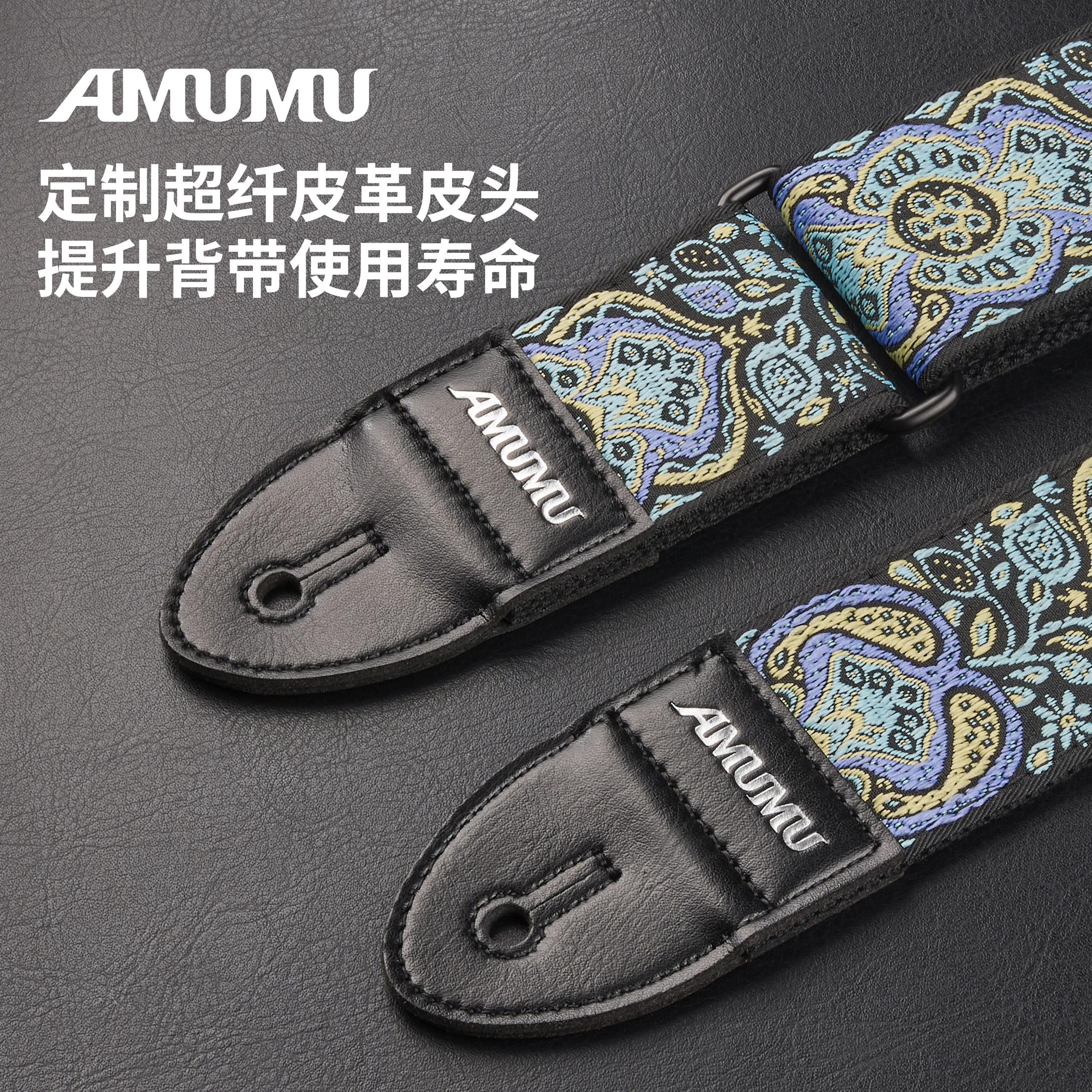 AMUMU高端刺绣吉他背带木吉他琴带电吉他贝斯斜挎肩带男女生通用
