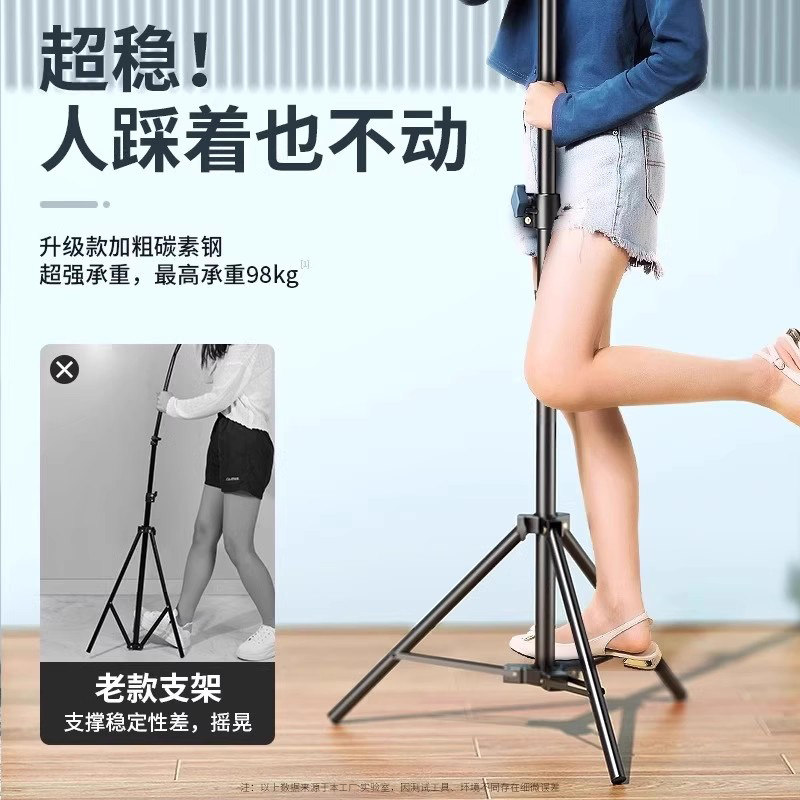手机直播支架自拍杆三脚架带补光灯户外便携拍摄专用神器架子通用视频落地2025新款拍照桌面抖音俯拍一个人拍